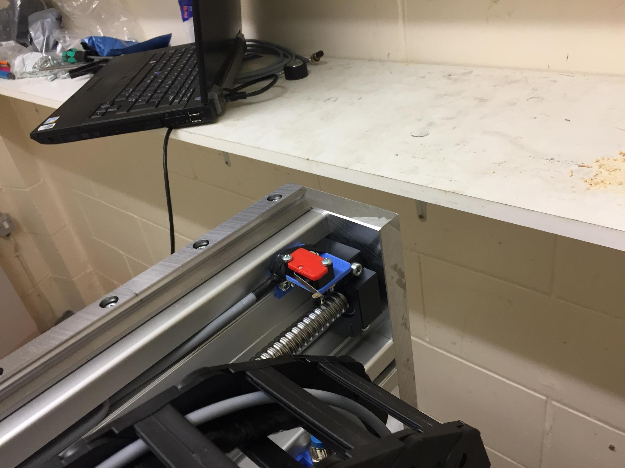 5) Attaching various homing and limit switches, once again on 3d printed mounts. Laying cable in the drag chain.