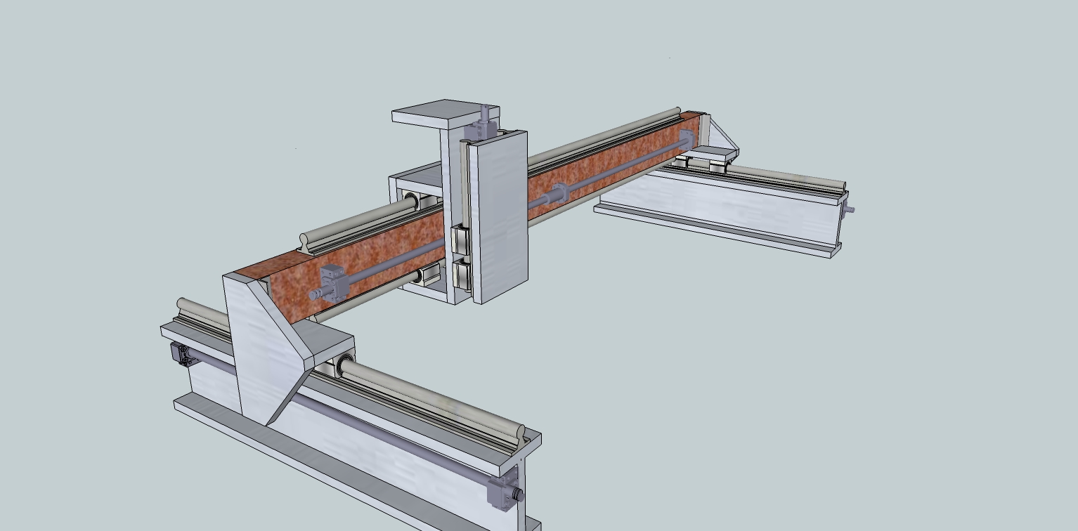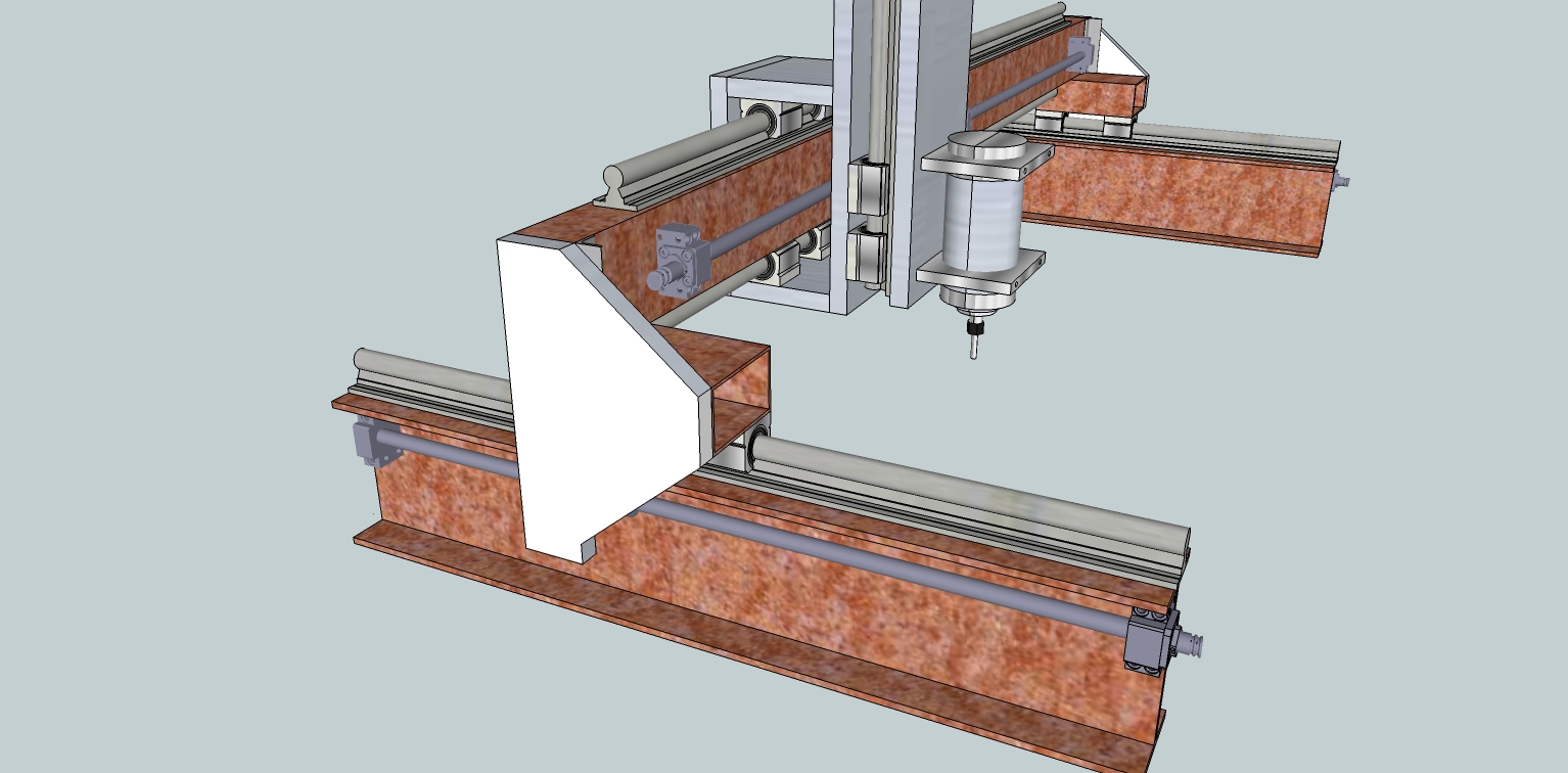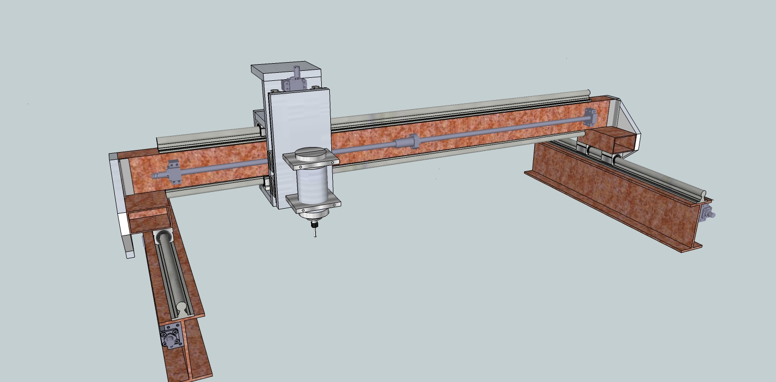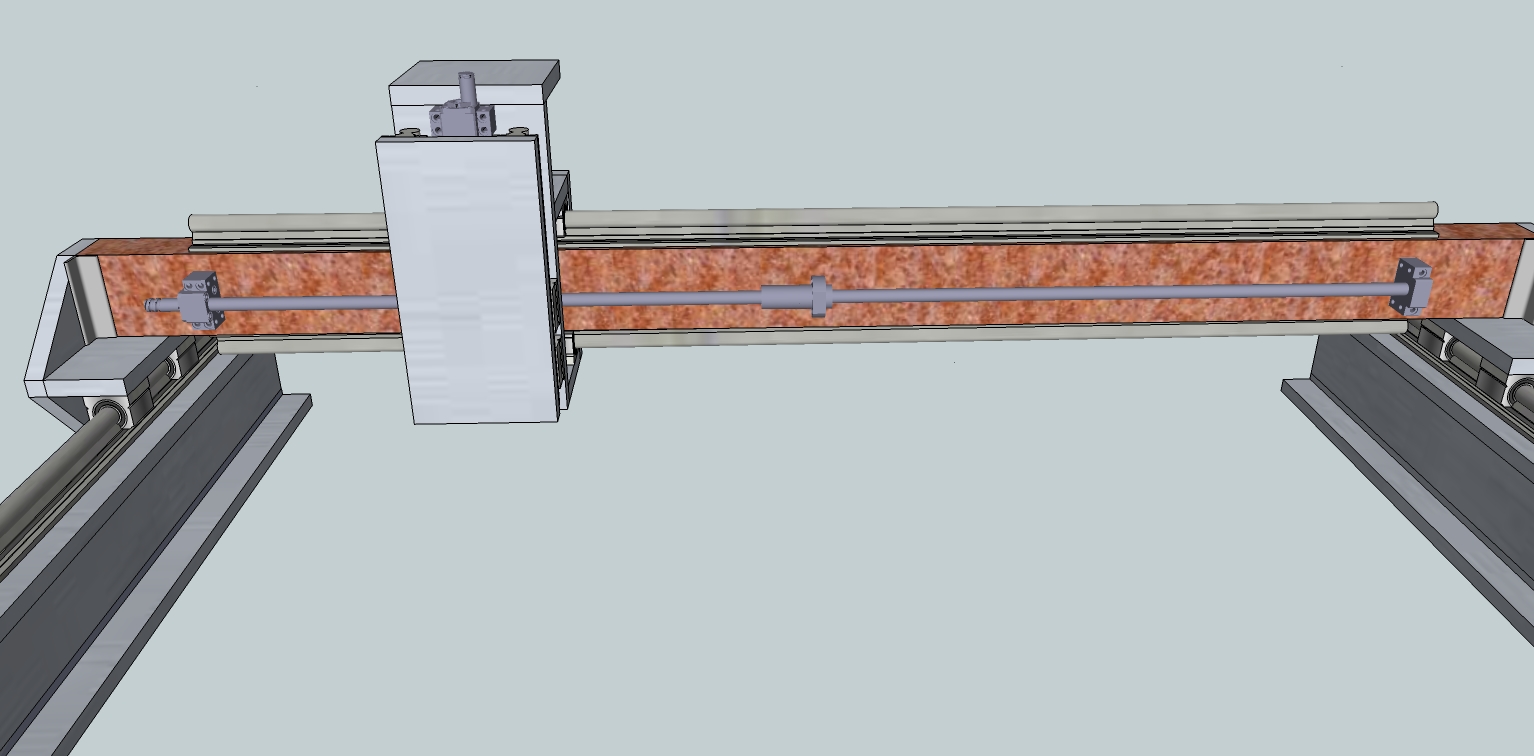 Would this design be ok, i thought i would use some 100x60 box section as bearing plates. I would have some left over from the gantry and it saves on the Ali plate. The extra height would help with the bed, bit more room to play with. This box section is only 3mm thick, is that ok. I have used 300mm, 2 x 800mm and 1400 SBR20mm rails. The ball screws are 350mm, 2 x 800mm and a 1450mm length.