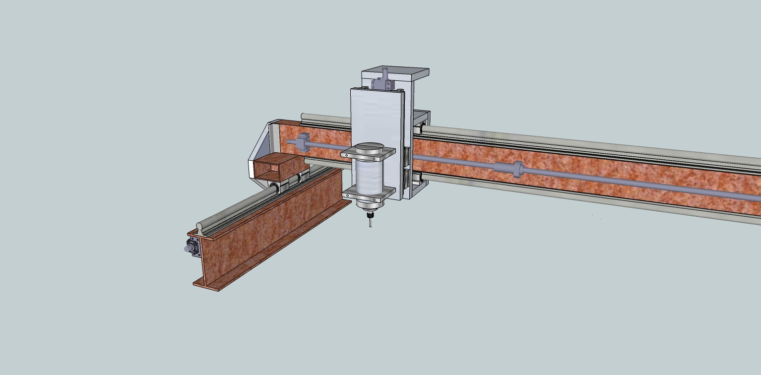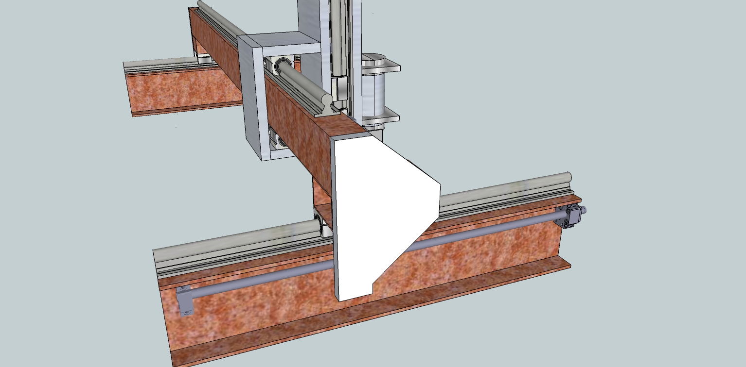 The gantry is box section and this will be bolted/welded to the bearing plates. I have put some steel angle holding the Gantry ends to the end plates as well, but the plates will also be bolted to the bearing plates. Rsj is only used on the base "X"
