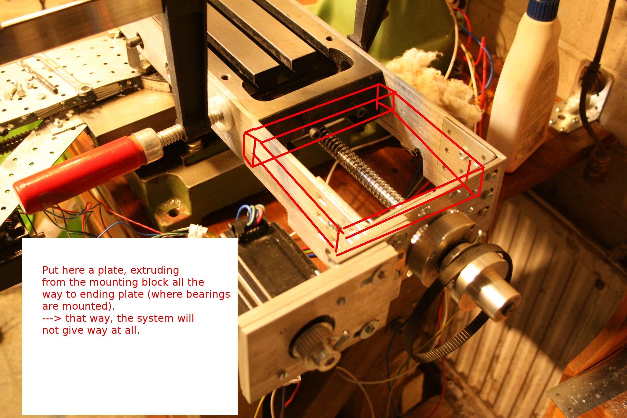 3) The "boxed sections" at either end of table, would add 15mm thick aluminium blocks between original table end, and bearing mounts.