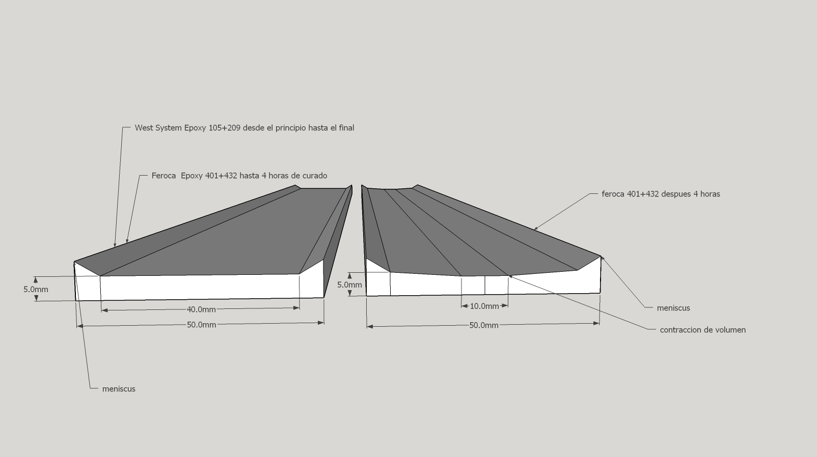 Left on the picture is WS 105+209 at the time of pouring and cured. Also the spanish epoxy untill 4h. Right is the shrinkage when 8h passed