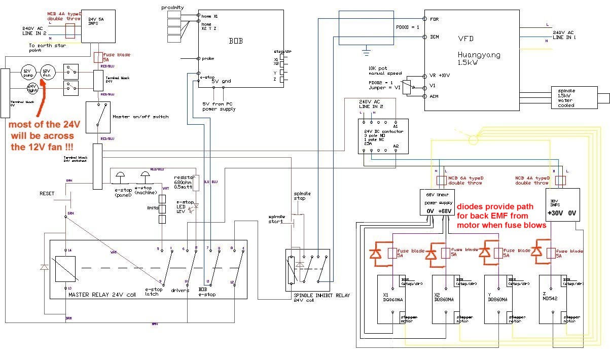 Note that my VFD is completely separate (separate mains cable, shielding and earthing), but many people run everything off one socket.
