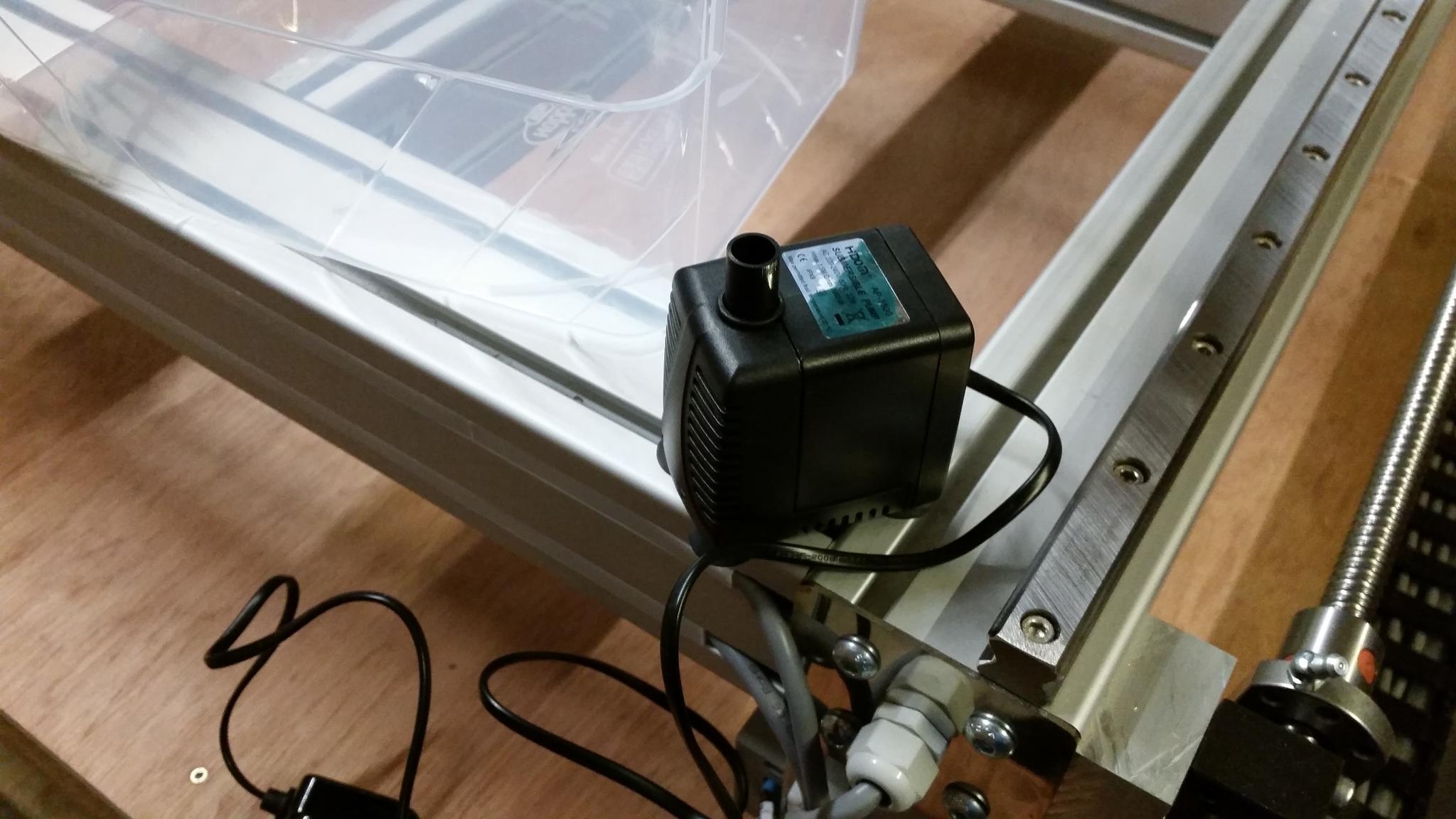 3. Bought 13 liters tank for coolant I think should be ok? I had a tiny aquarium pump 1000l/h wich probably will not be powerful enough to lift the water all the way to the spindle, so might be looking for something bigger. I was thinking use car antifreeze and mix it with distilled water, so the system will be clean, and in the coldest times in the winter it will not freeze inside the spindle. What are your suggestions on that?