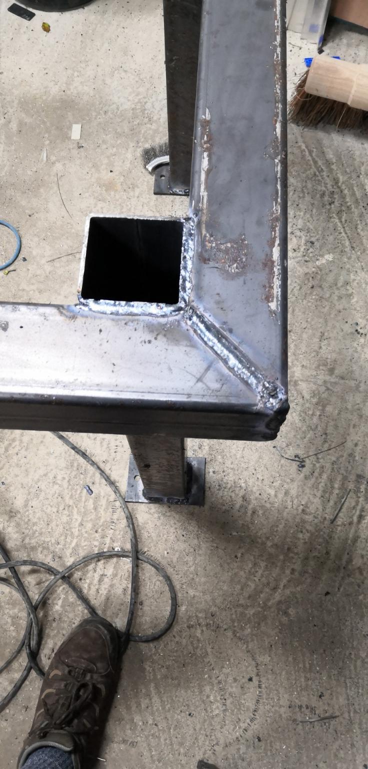 Cut and welded yesterday, painting in silver hammerite today. The more I use it the more I love this little MMA stick welder. welded the 3mm box section mitres at only 45amps! Almost as good as a MIG without any complications.