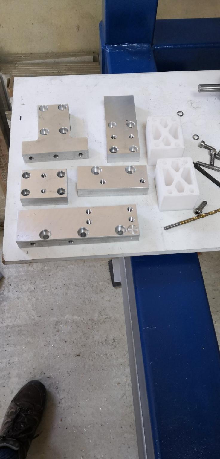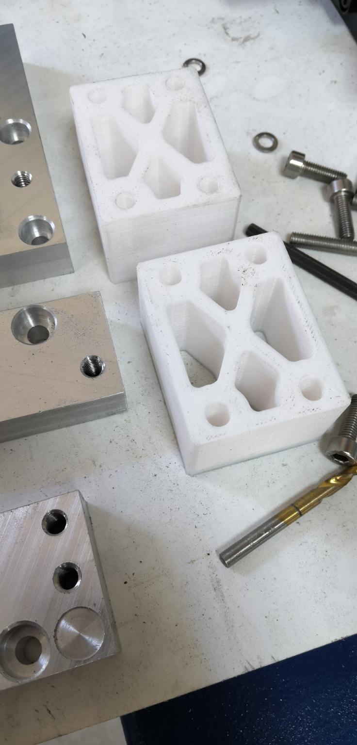 Finished making the last set of plates, these are for the X and Y axis, ballscrew mounting. Hopefully this is the last of the aluminium work on the manual mill. I still need to make some stepper mounting plates but leaning towards doing those in 3mm steel.The white parts are 3D printed standoffs for the X axis ballnut holders, I didn't have any large enough ally stock so we will have to see how they fare. They get clamped between two aluminium lumps so should be ok, if not will replace when I have some bar stock.