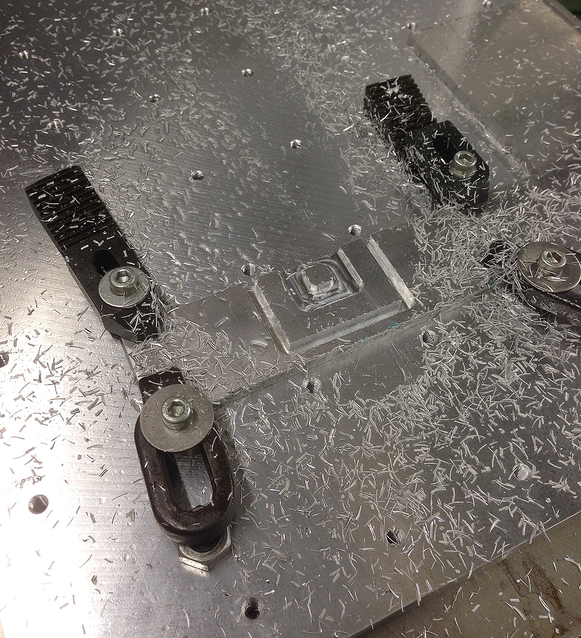 A lump of junk alu was then clamped down with overkill clamps and a further half an hour expended trying to figure out the correct probing routine for a new job :cool: