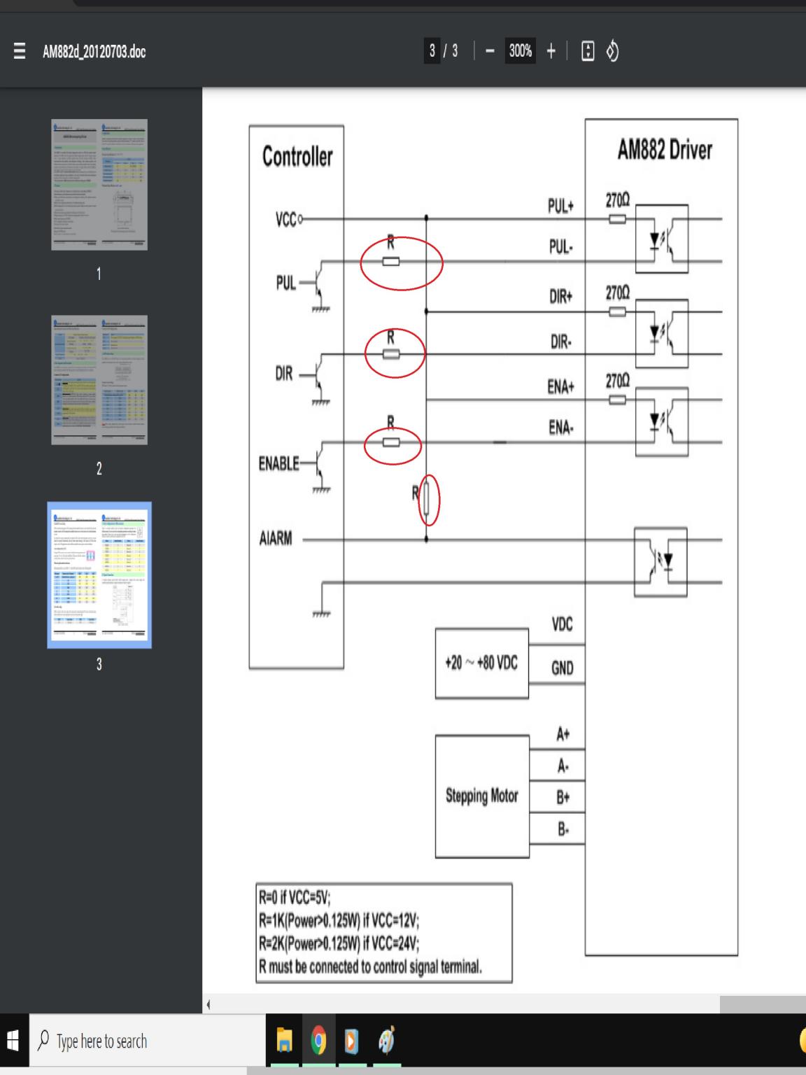 I am using the uc300eth UB1 with AM882 Leadshine stepper motor drive, as I understand from the Leadshine manual I have to use 2k resistors for the PUL- , DIR-,ENA- and alarm since I use 24volt outputs of UC300 eth ub1 right?