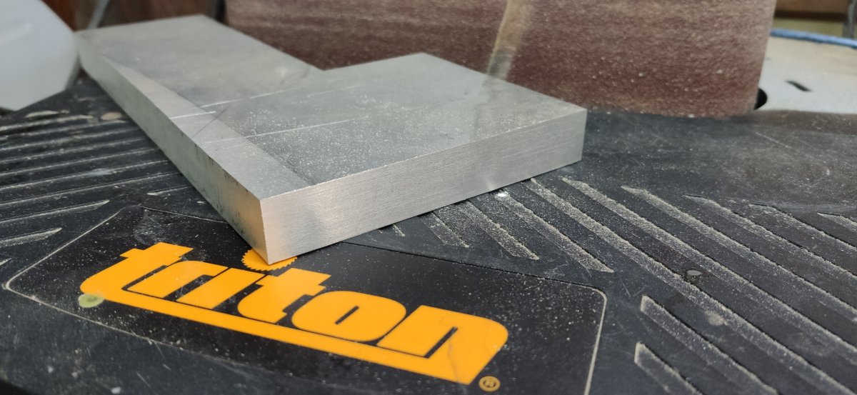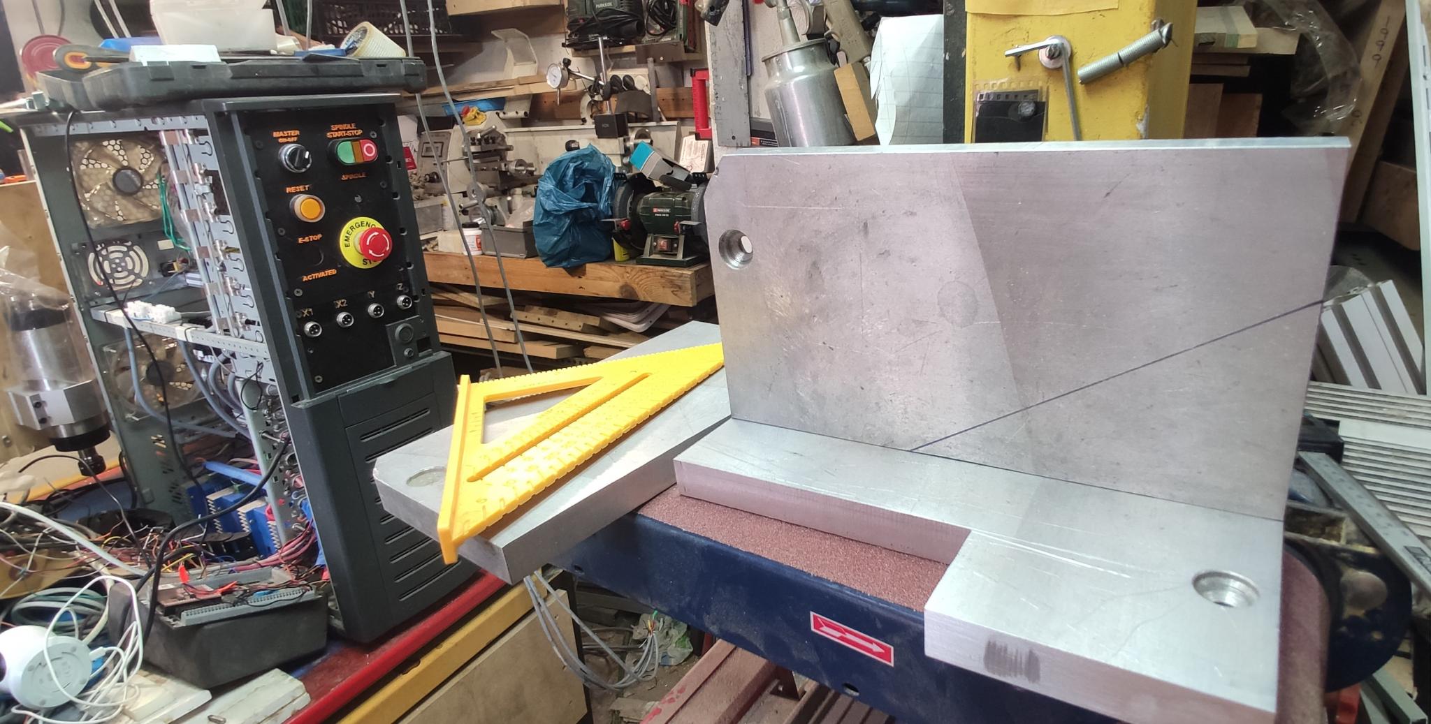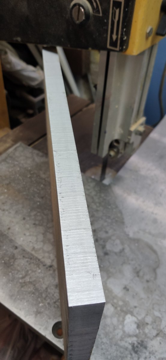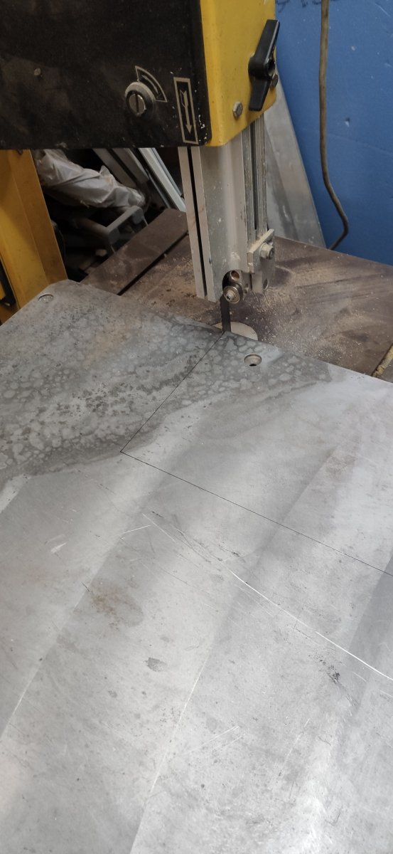 I cut with my bandsaw the 20mm thick aluminum plate I bought from a scrap yard for 80 euros, to replace the MDF I use to mock up everything.