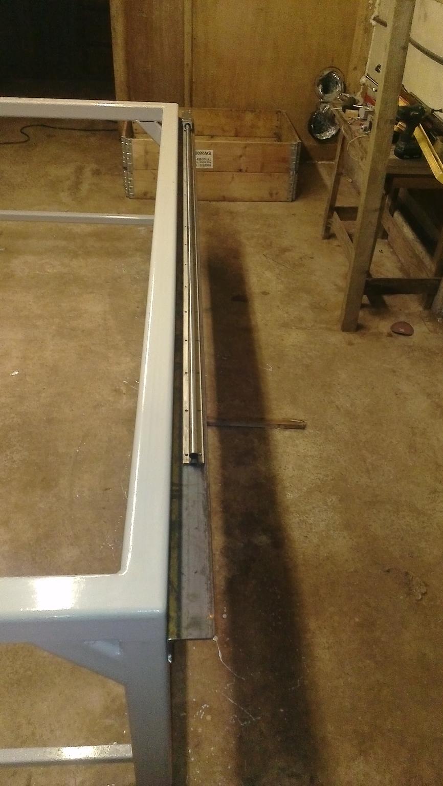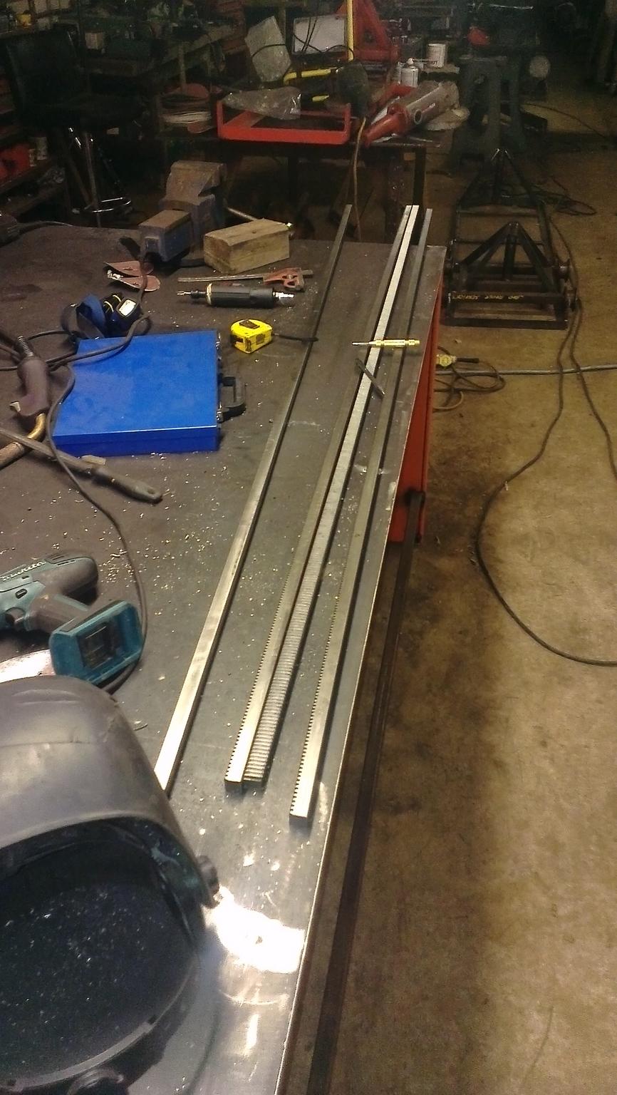 next i needed to drive the y axis so after alot of advice i opted for rack and pinion,it came in 2m lengths and i needed two 3m pieces... (lee roberts look away for the next few photos :triumphant:)