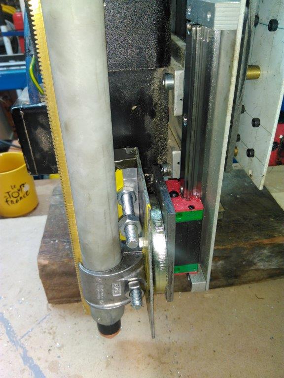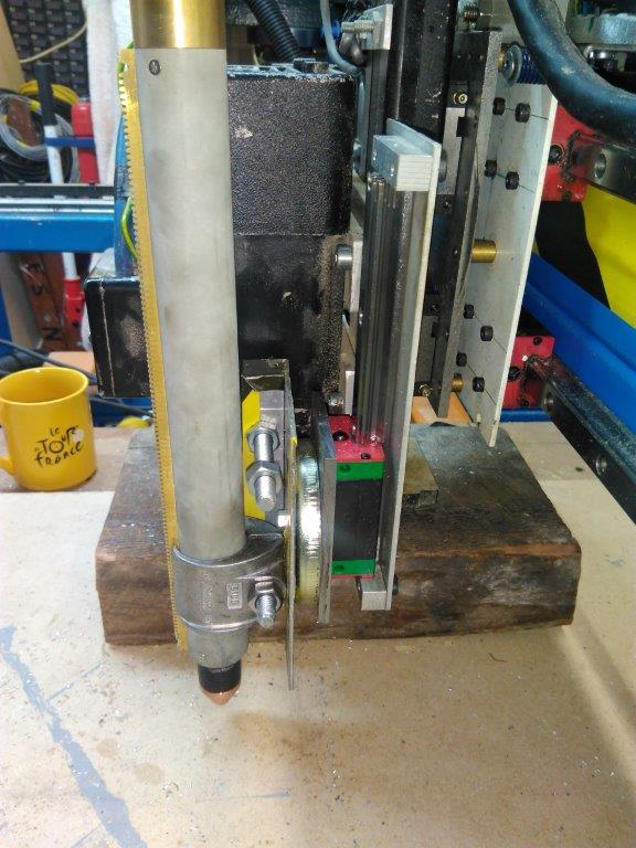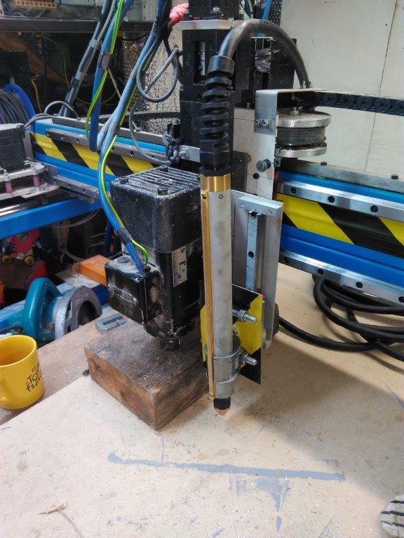 The torch and spindle occupy the same z axis as the is plenty of room on the table for both and i just cover it up when plasma cutting and remove the torch when i router with the spindle.