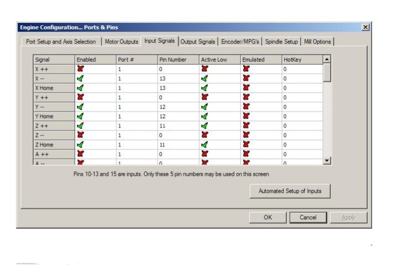 Hi all, i'm having problems with the wiring of my home switches, mach 3 doesn't seem to recognise them in the diagnostic screen but they are working, but incorrectly, you have to press the the switch a couple of times before the axis stops. at the moment they are connected up open circuit, so when the switch is pressed it becomes live i have swapped the wires but to no avail. I have no idea whats going on and i'm not sure how to configure mach 3 with regard to the inputs and outputs etc