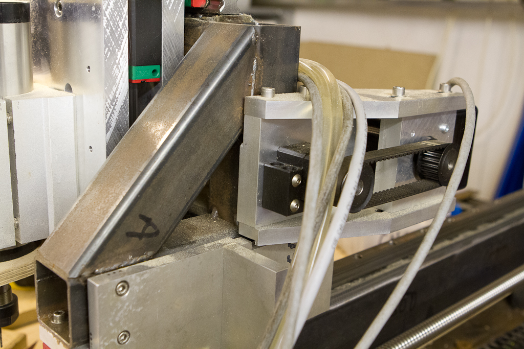 I spent a long time wondering about two X motors or one bigger motor with a long belt. Two motors is mechanically better on my machine as it leaves one end completely unobstructed without needing multiple pulleys to guide a long belt across. However, I also wanted to use a CSMIO-IP/M motion controller which originally did not support dual motors on a single axis, sending me down the single-motor route. However, before I had finally committed to the single-motor design, CS Labs issued a new firmware update which provided minimal but adequate support for dual motors, so that’s the way I went.