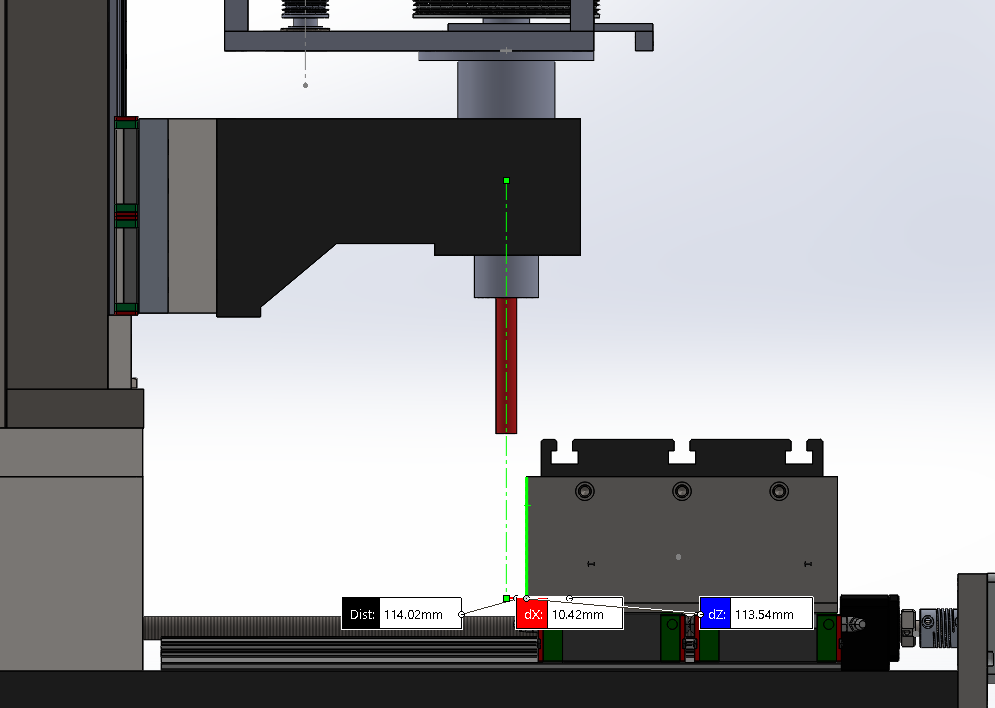 Also the depth in Y from the spindle to the column is fairly limited. Once you have a vise in there, you will lose some of that, reducing it even further. - I tried to space it so the axis of spindle was relatively central to the limits of the Y travel, see below. Would it be more useful further out. Lack of experience on my part to know this