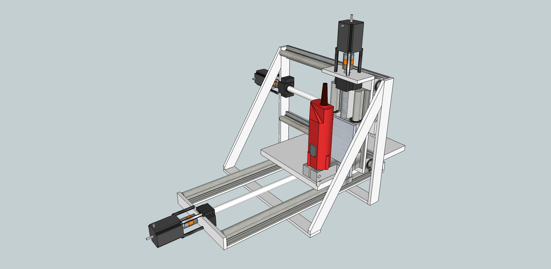 Bolt the vertical risers to the sides of the Y axis aluminium sections. Connect the diagonal braces to the vertical risers with a lap joint not a mitre. Using an offcut from the vertical riser as packing, lap joint the braces to the aluminium sections. Maximise the rigidity the diagonals have to offer.