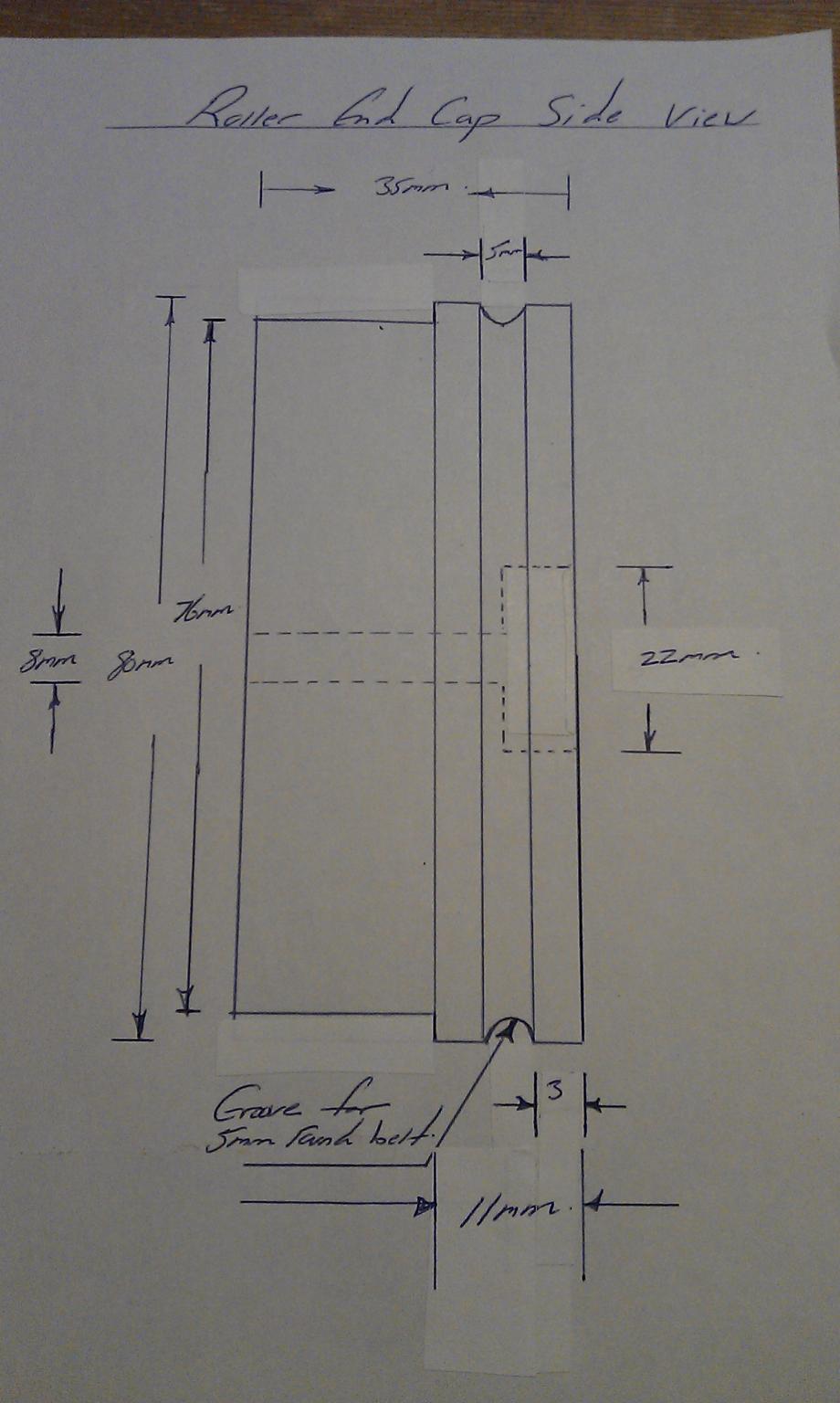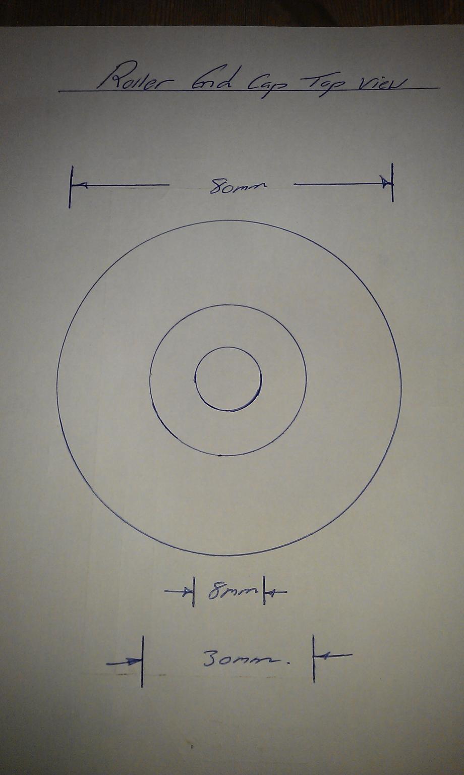 The diameter of the roller is 80mm. The wall thickness is 2mm. All I need is the rod machined to fit in the roller (like a cap) and a grove machined for a belt. Also needs to have a centre hole drilled of 8mm and bigger diameter hole part way through for a bearing. Hope that all makes sence!:confused: