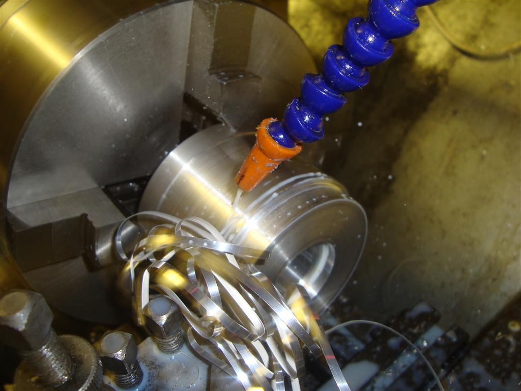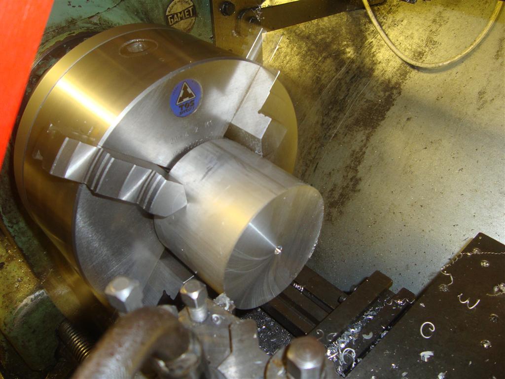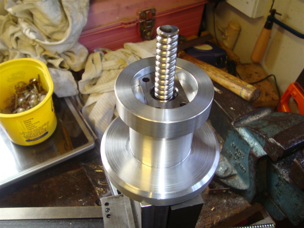 Next I turned some 3.5" aluminium bar to accommodate a two ballnuts, one in each end:
