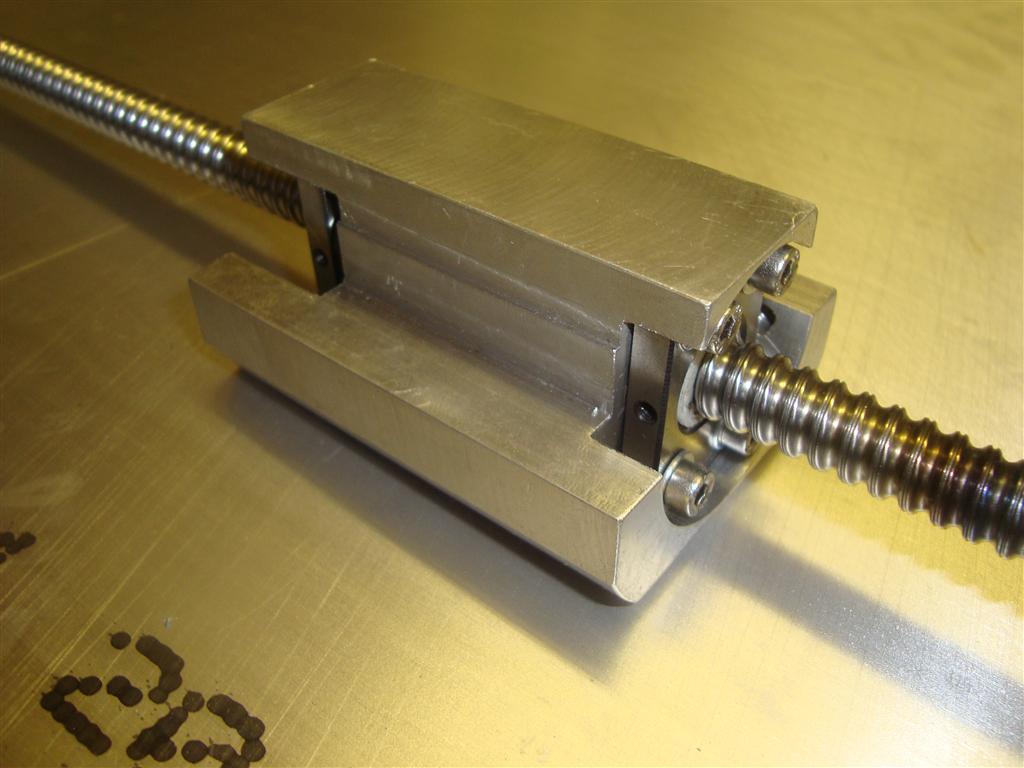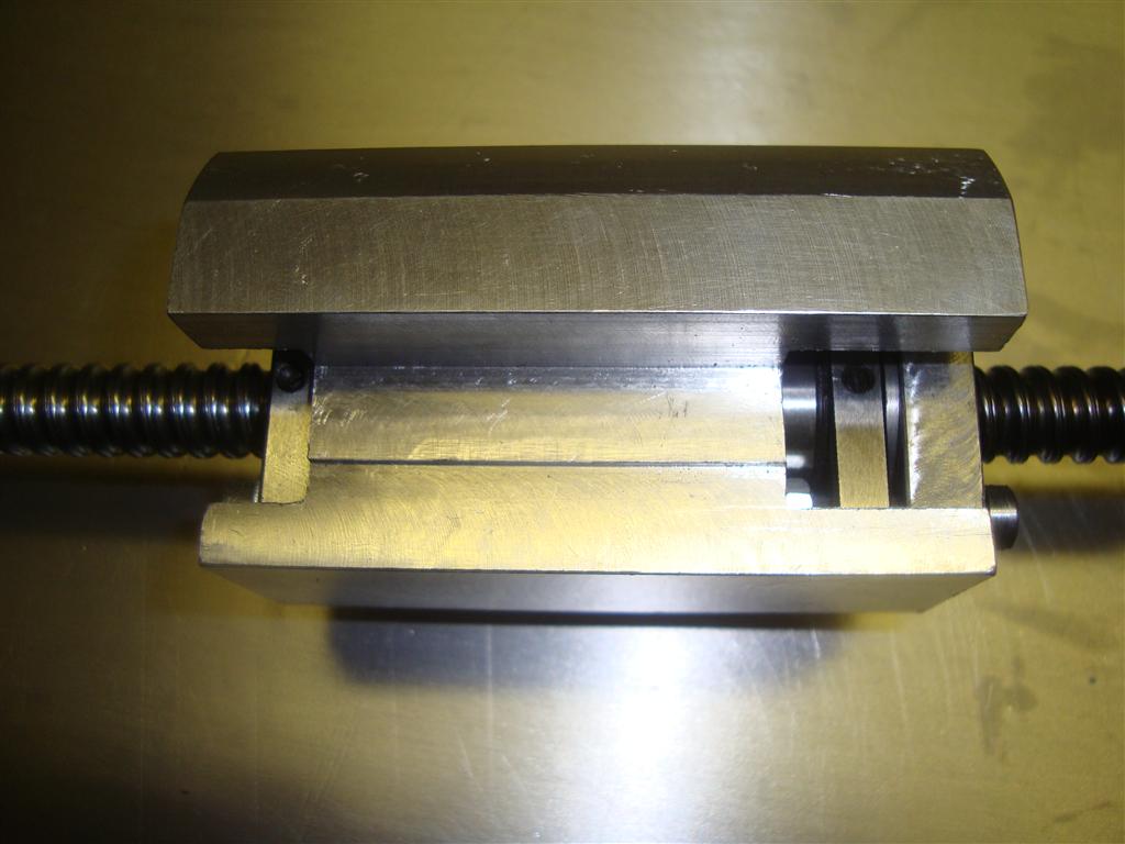 I cut the ballnut mount from 2.5" aluminium bar. Bored, drilled and tapped both ends to accommodate the ballnuts in a similar fashion to the X ballnut. Then some milling and finishing with flycutter. Next I machined the ballscrew and made a quick tube to fit over the end and transferred it into the ballnut. This enables fitting the ballnut without all the balls dropping out...