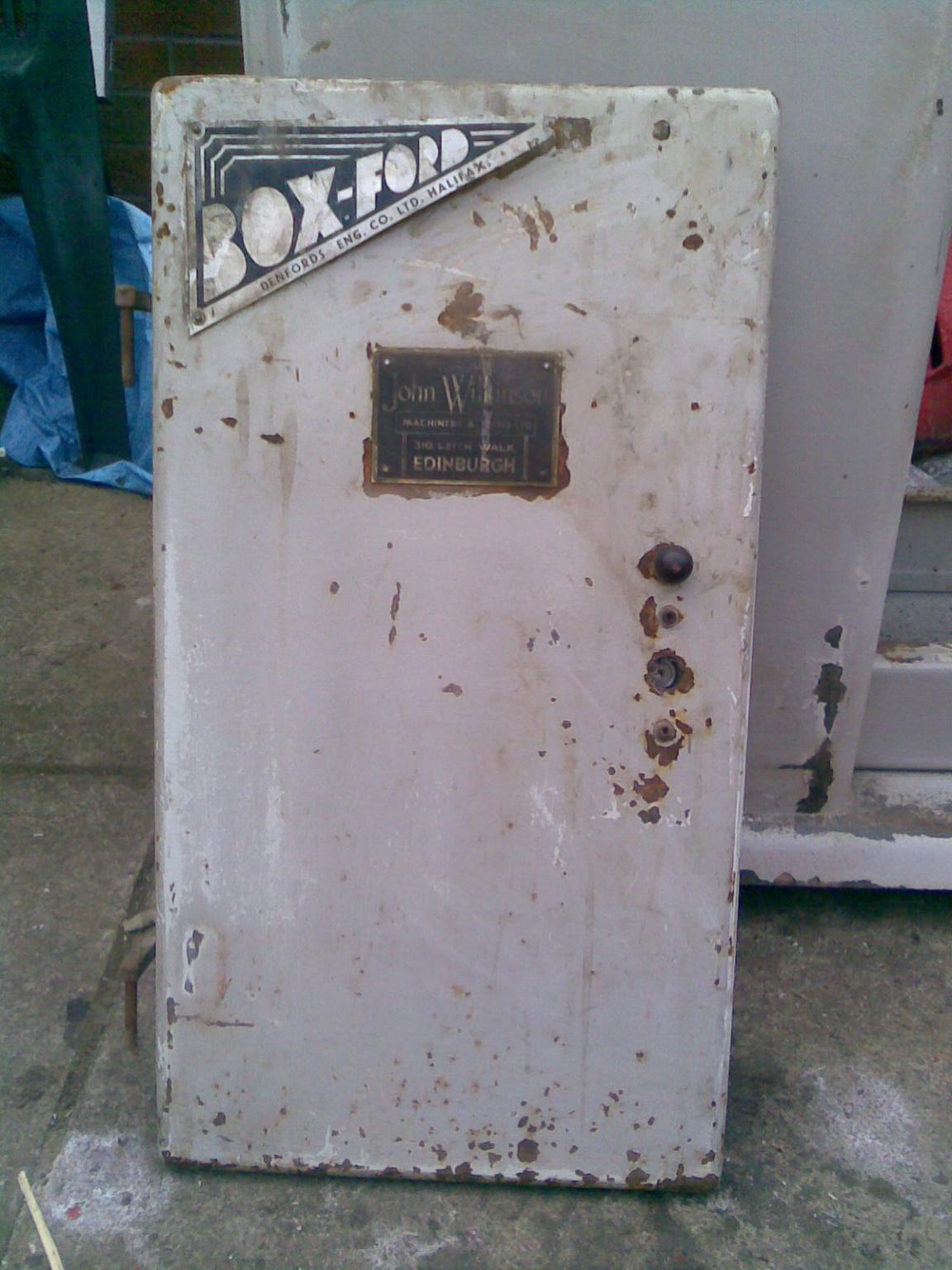 the door sporting the original boxford logo and the suppliers plate