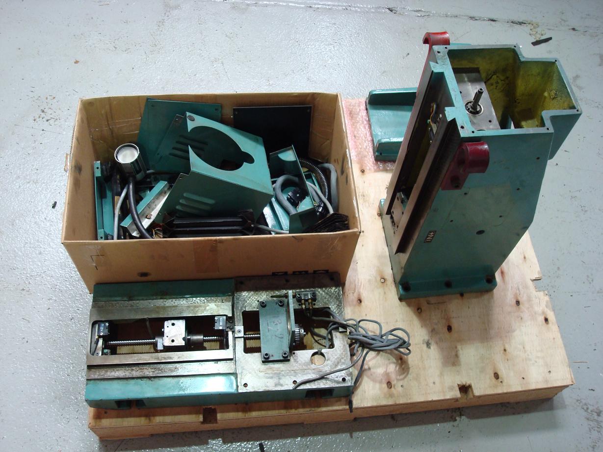 first, machine as received, then disassemble and got reed of the base (too big) ready for transport home!