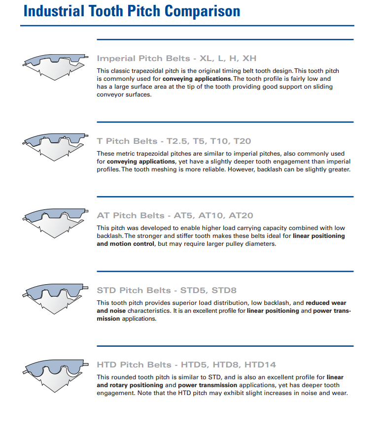 Now there is the GT2 type, a modified HTD shape providing high torque as well as minimum backlash comparable to the Trapezoidal and the AT type which is an improved classical Trapezoidal profile for better performance and reduced or zero backlash. I even found a new type of "Non-Backlash Timing Pulleys" S8M.