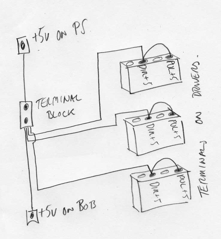 Another question - as shown in the diagram here, will it be okay to take the +5v from the PS into a 13amp terminal block and distribute the power to the BOB and the drivers from there? I can't see why it wouldn't, but there's the duncery kicking in again...