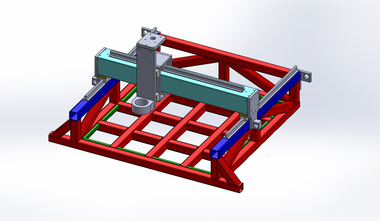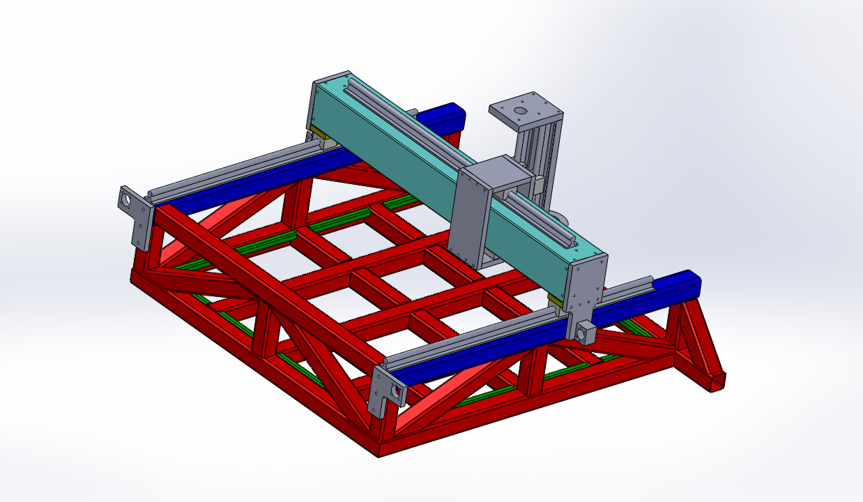 This also means you could drop the green bits because the bed will be supported where it matters, in the cutting area, and the small overhang which is a cantilever won't matter has it has no forces acting on it.