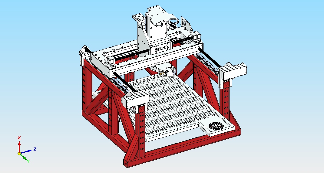 Overall we're happy with the machine. All the parts of the drive chain are adequate, and the main specifications of the machine have been met. It's strong enough to cut aluminium pretty quickly with just one X ballscrew attached.
