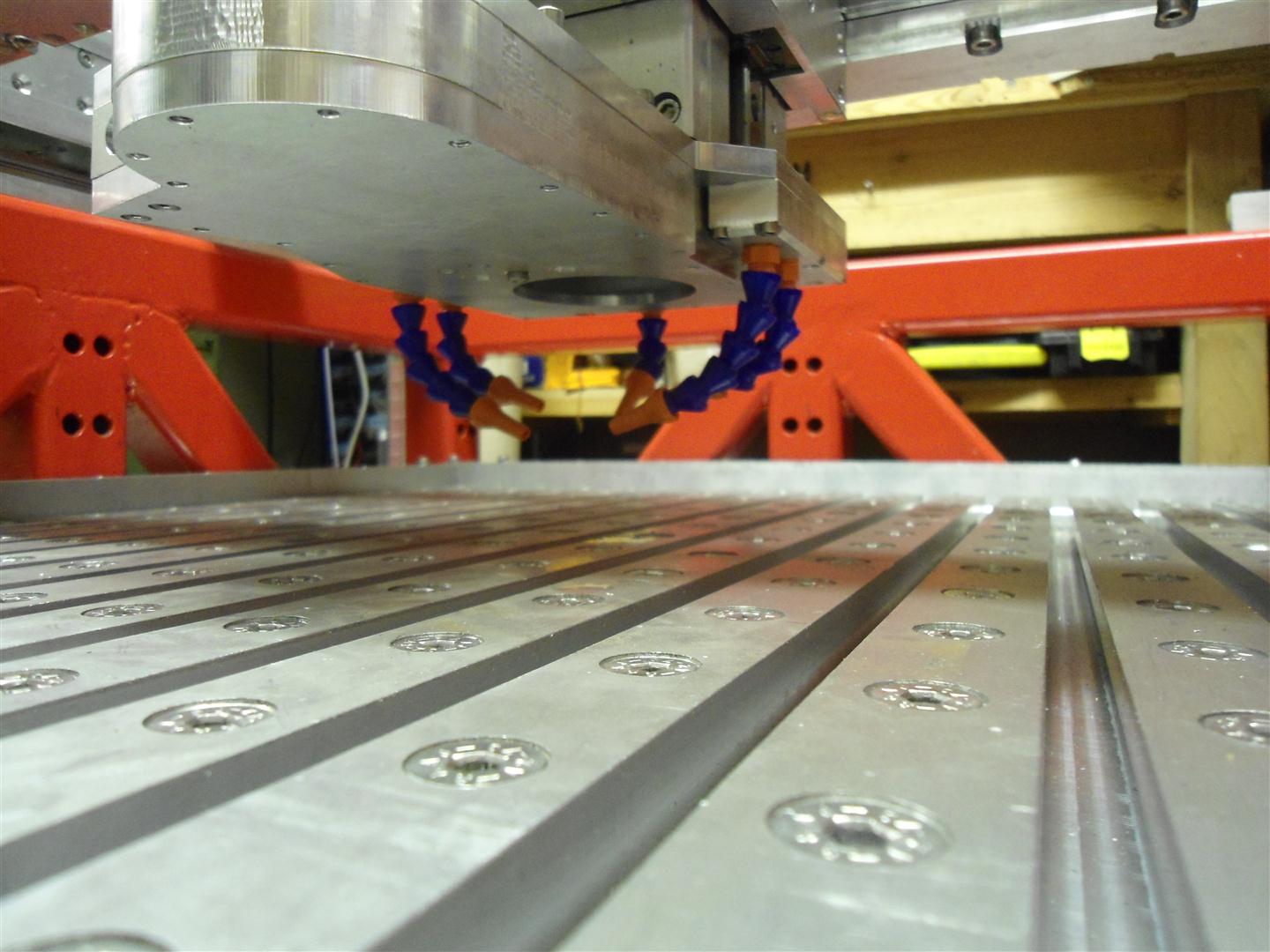 - Remove required screws and clamp from the bottom of the bed through the tapped holes using a smaller bolt size – awkward but nice to have for that one time that it's crucial to have an uninterrupted machining surface with virtually no possibility of collision with clamping fixtures.