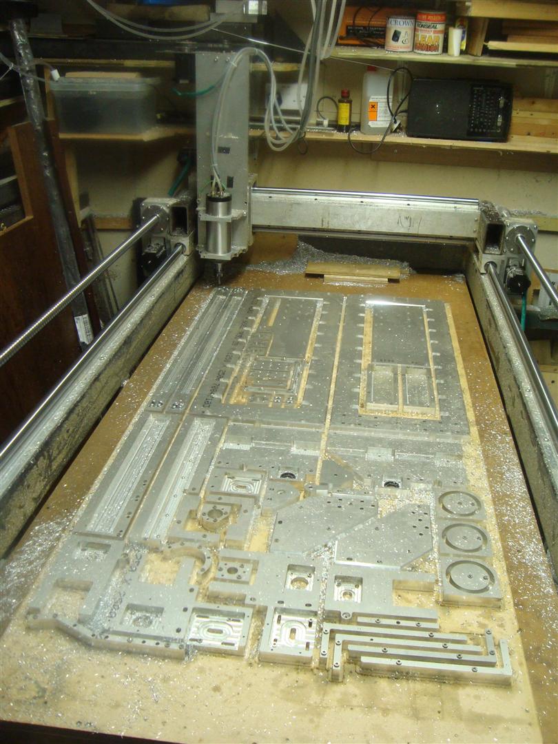 For the top and bottom plates, 20mm sheet was used with 1” thick flat bar for the rail mounts. For the remaining covers we used 10mm sheet. We milled the mounting surface for the X-rail bearings using my milling machine and milled the surfaces for the Y-axis rails using the bridgeport (clone) milling machine at school, as my machine didn't have sufficient travel. This obtained accurate smooth surfaces with reference edges to ensure accurate alignment of the linear bearings.