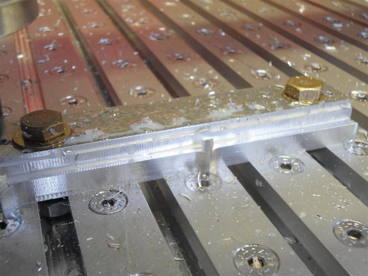 Before finishing the machine, I assembled the majority of it to find any problems or parts that would need altering. This gave the opportunity to test cutting something, so I put an offcut of 20mm 6082-T6 aluminium plate on the bed: