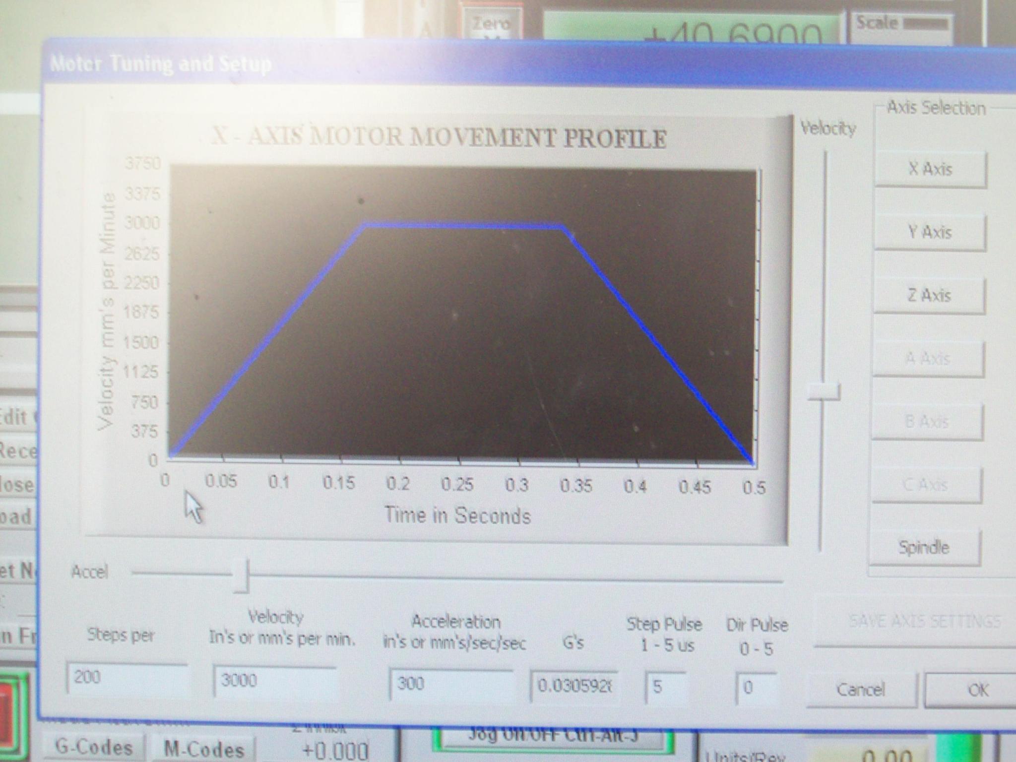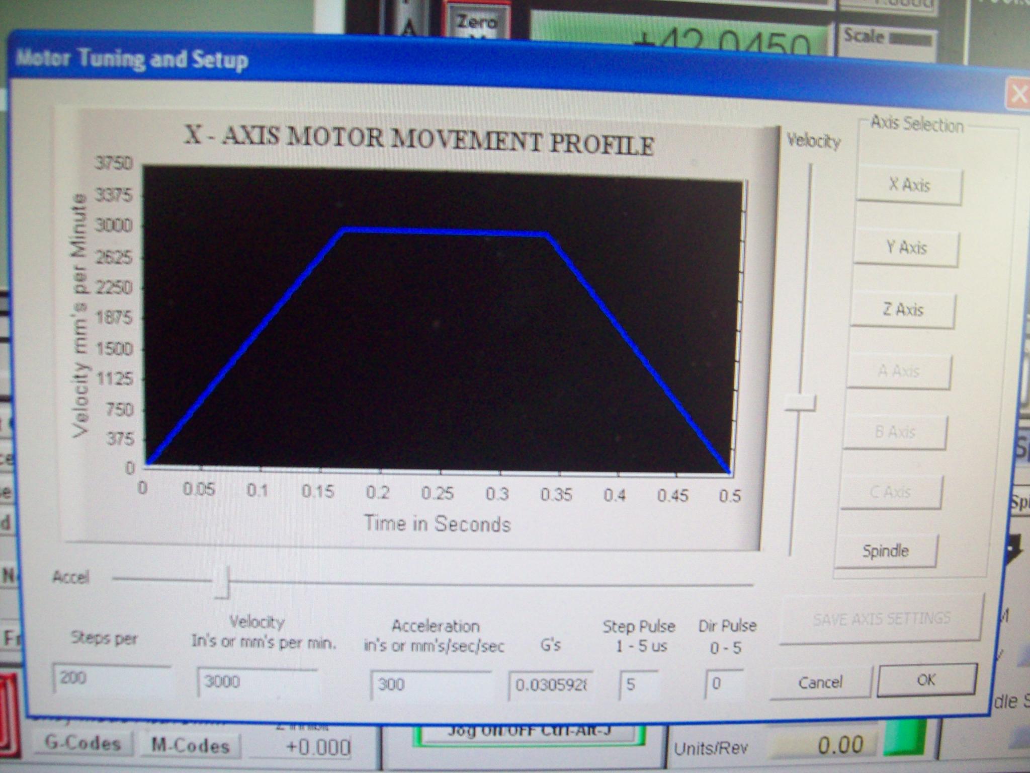 The guy that converted my machine has done many Triac’s and set the X & Y at 3000mm / min, Z axis at 2000mm/min I am asking him for the spec of the motors.