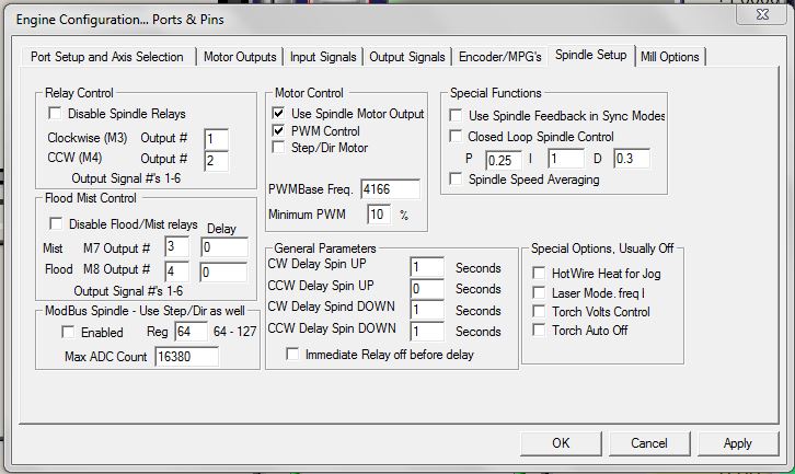 Hi all.. can u point me i the rigth direction.. i can get 0-10V from BOB .. what i need to put in SPINDLE in Mach3 ??? pin ports ... thanks a lot !!!