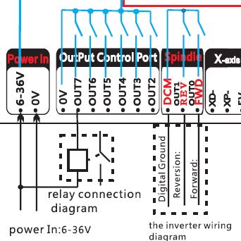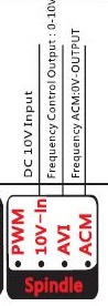 I use power 24V from motion card rather than from Spindle output - sound strange. Input in inverter still got 0V (CM) and signal from V1 from motion card (AVI).