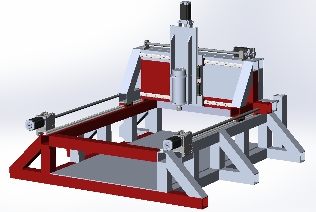 The plan is to use 20mm profile rails and 16mm ballscrews on all the axis. With dual 1000mm drive one the X-axis. I'm going to use nema23 stepper motors but i'm still uncertain on the torque requirements I have to do some more calculations there. Though it seems like most of the steppers have a very high corner speed and to utilize all the torque and speed of the motors they should be geared down about 3:1. Any thoughts on this?