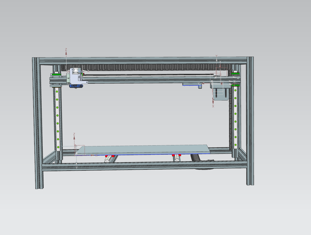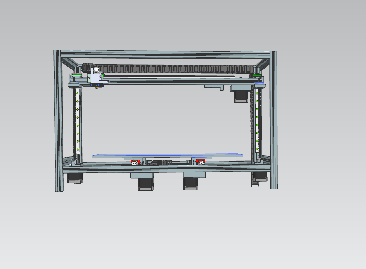 Then i said to my self: but it needs a double side beams for the gantry so its more rigid, does not vibrate and you could lift it and move it without need to adjust it again Then it looked like an almost finished half aquarium. So i said to my self- aluminum profile is not so expensive so better for 20 -30 euros more i make it so that if desired sheets to be bolted to profile and printer enclosed without any further modification or extra box needed.