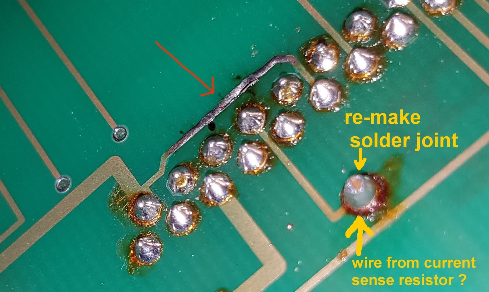 I would resolder the current sense resistor as well