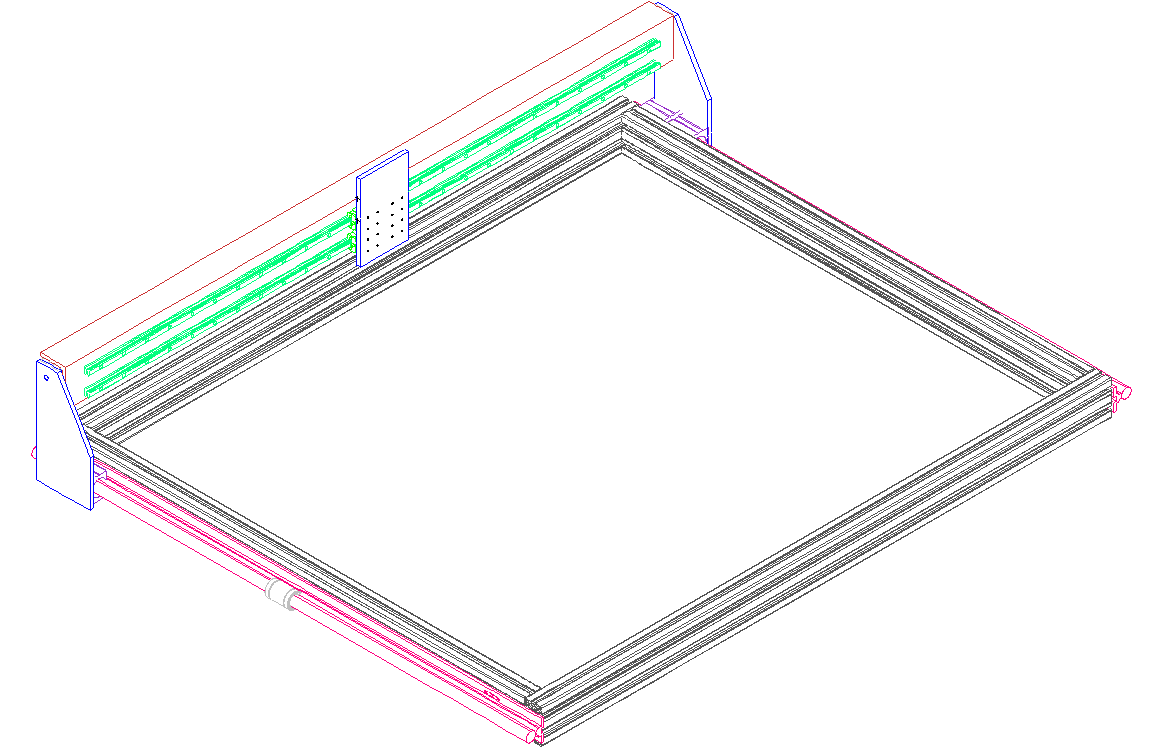 Attachment 21471 I made last minute design change it's now going to have a working area (Hopefully) of 1.2m*0.8m also trying to sort 2 slides for the other axis. The frame you see the long bits are 150cm and the short lengths are 100cm, width of extrusion is 4.5cm*9cm (It's the heavy duty profile).