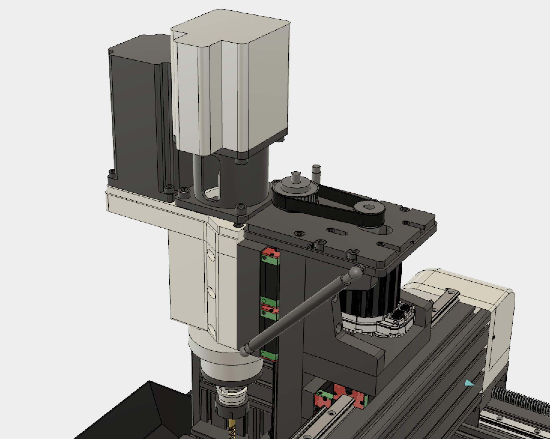 Nice work so far. Can you show the detail behind the Z axis top covers. I'm guessing servo drive via belt to the top of the ATC spindle pulley?