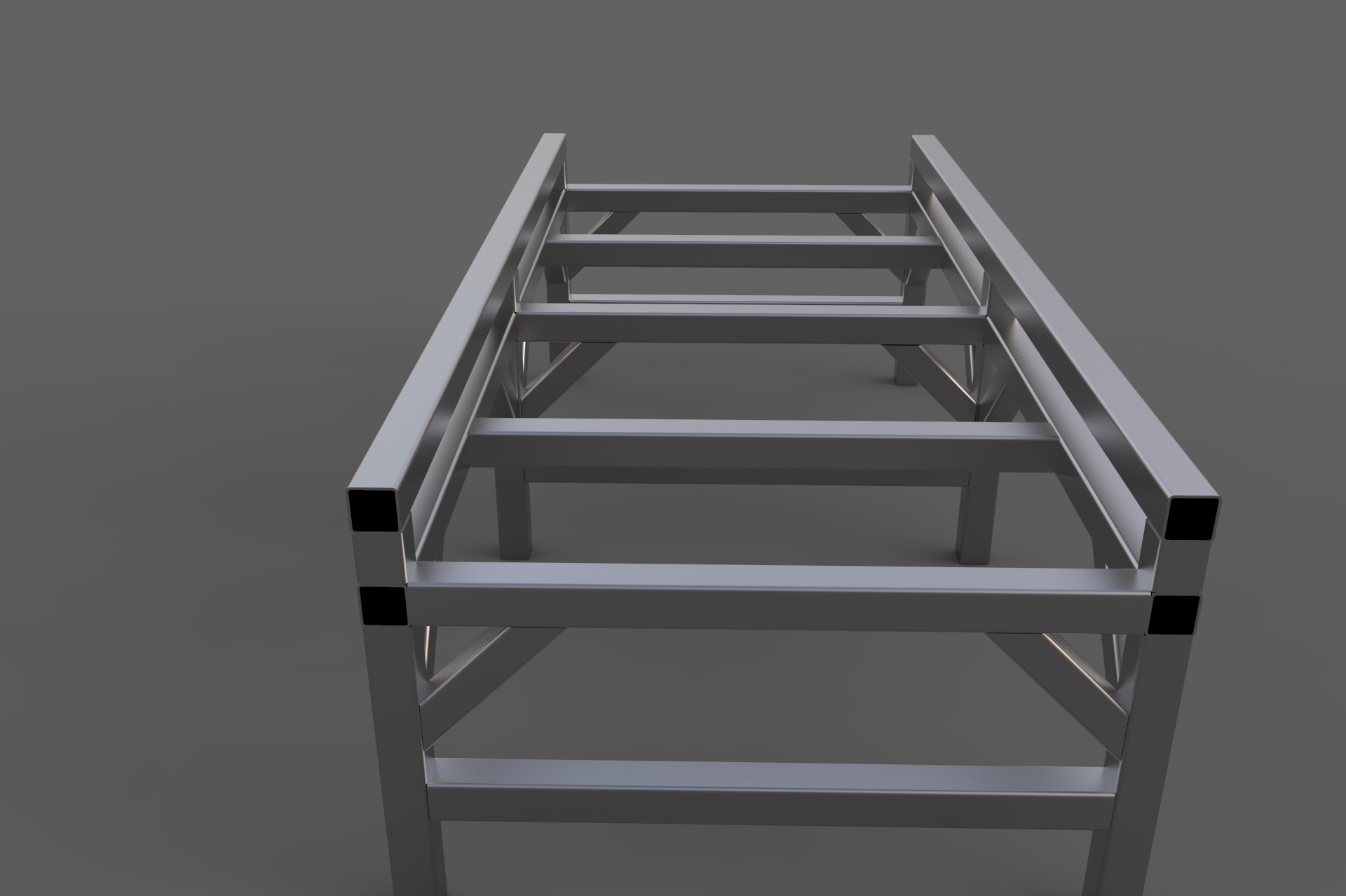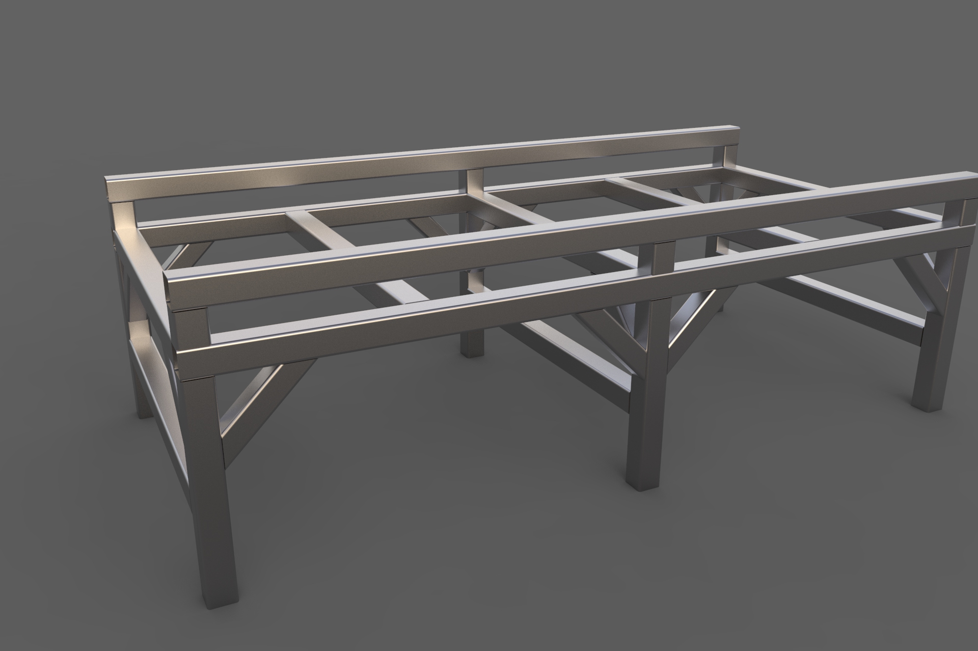 I took one look at your design last night, and immediately wondered how many tonnes you were planning on having on it, and why it wasn't using full length sections on the long edges. It looks to me like you've just kept adding bits, without really thinking about why you would need to add them, and ended up with an over complicated design.