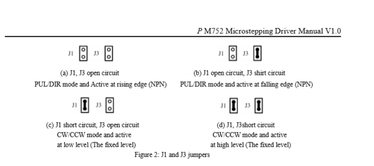 Just about to head down to the workshop to try the pulse edge thing, but I also notice in my drive manual/datasheet that there are 4 jumper settings to choose from: