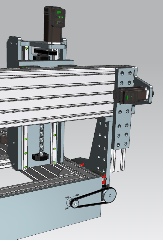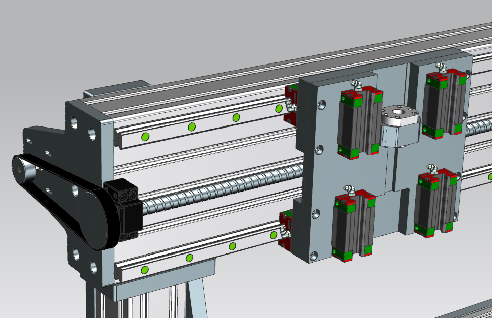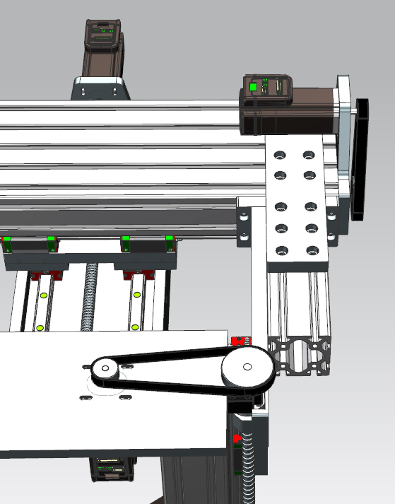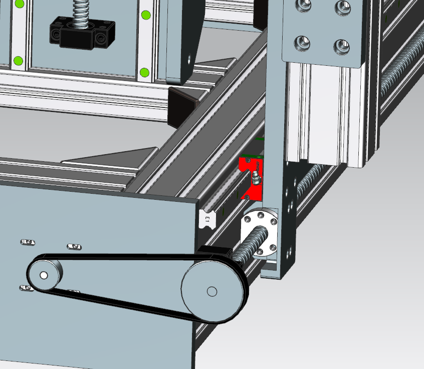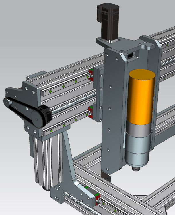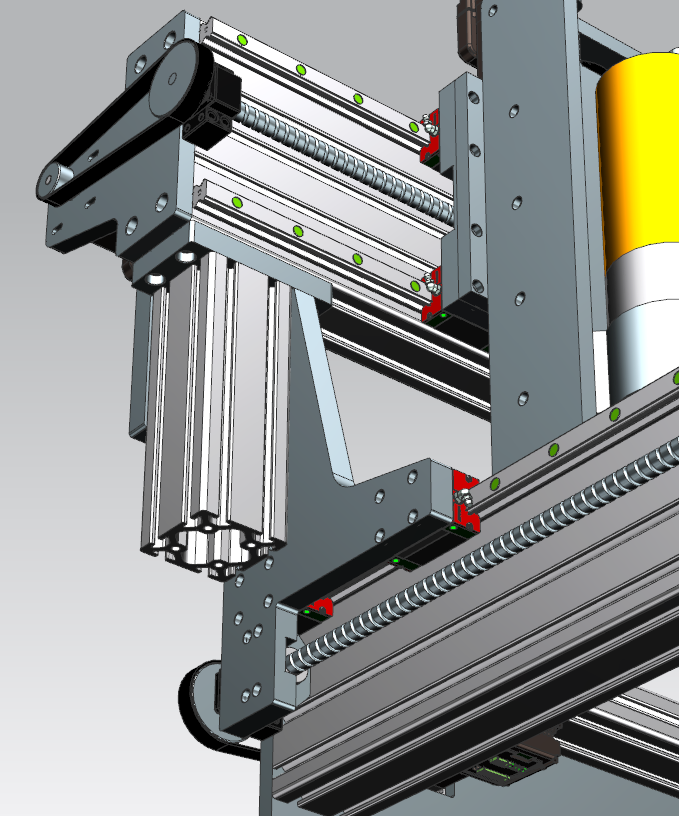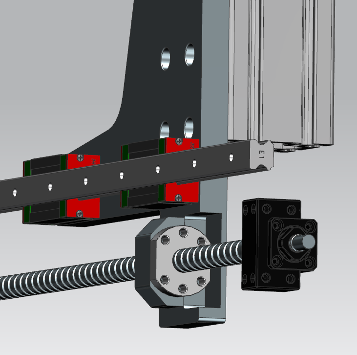 Attachment 27394 - Y-axis linear rails are side mounted to the 160x80 item profile. This allows a larger work area and the ball screws can be mounted to the same piece of aluminium plate, with a little bit of machining.