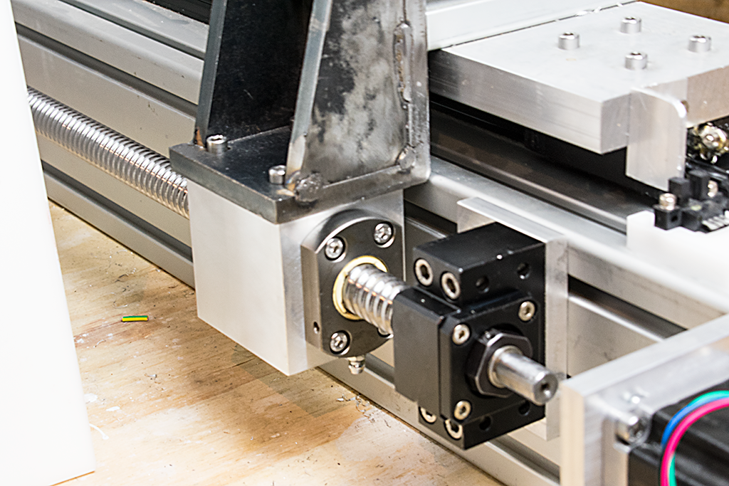 I have a Ground NSK ball-screw on the X axis, positioned on the top of the extrusion. I chose to do that as I wanted to get the Z axis as close to the rails as I could.