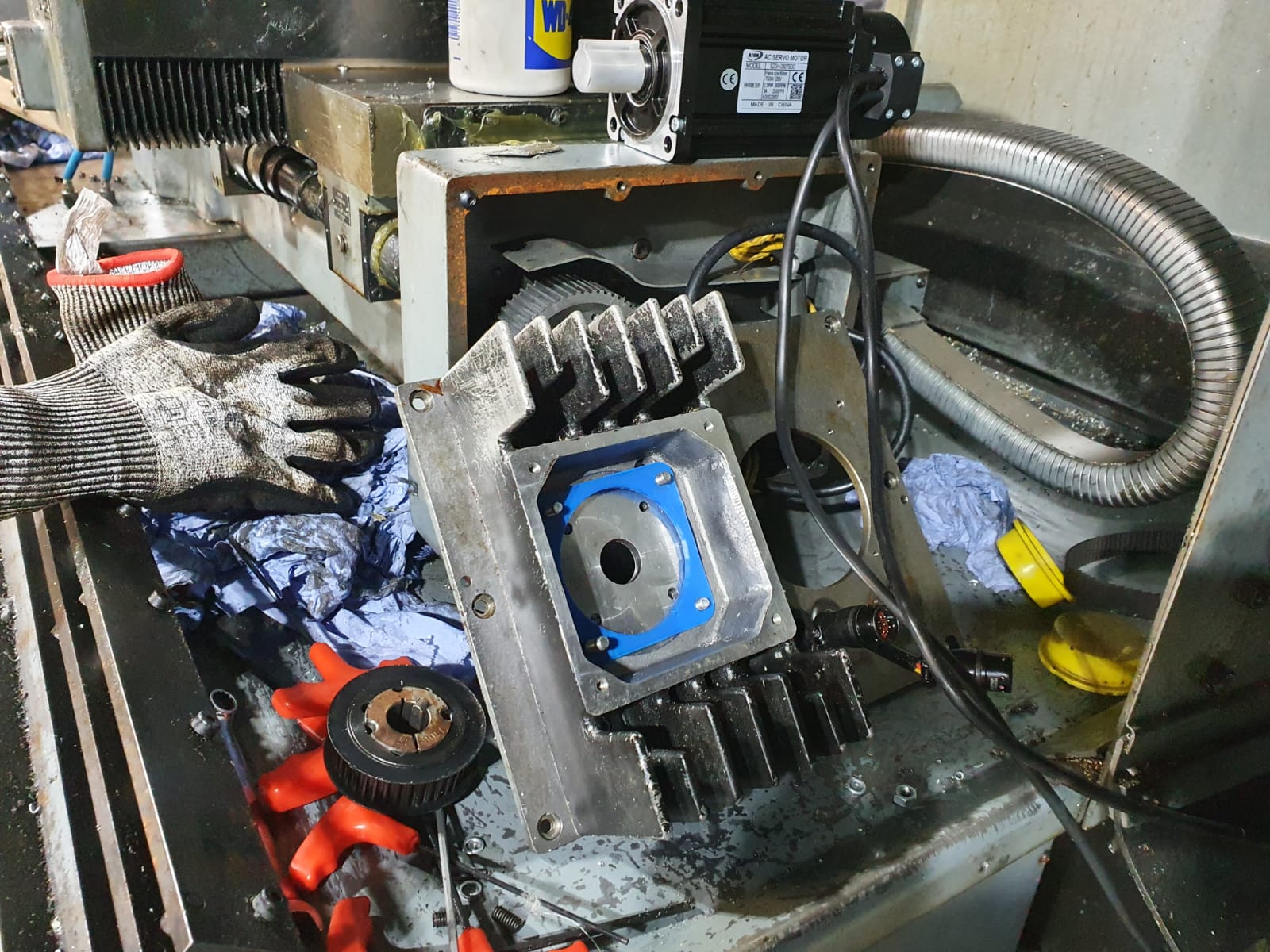 Was trying to remove the spindle 'mounting' system, removed all bolts, cant get it out. There's clearly some adhesive in places like a sealant, could be that. I'm hopeful making a adapter plate for the slightly smaller motor should be straight forward - just need to get one of my mills up and running.