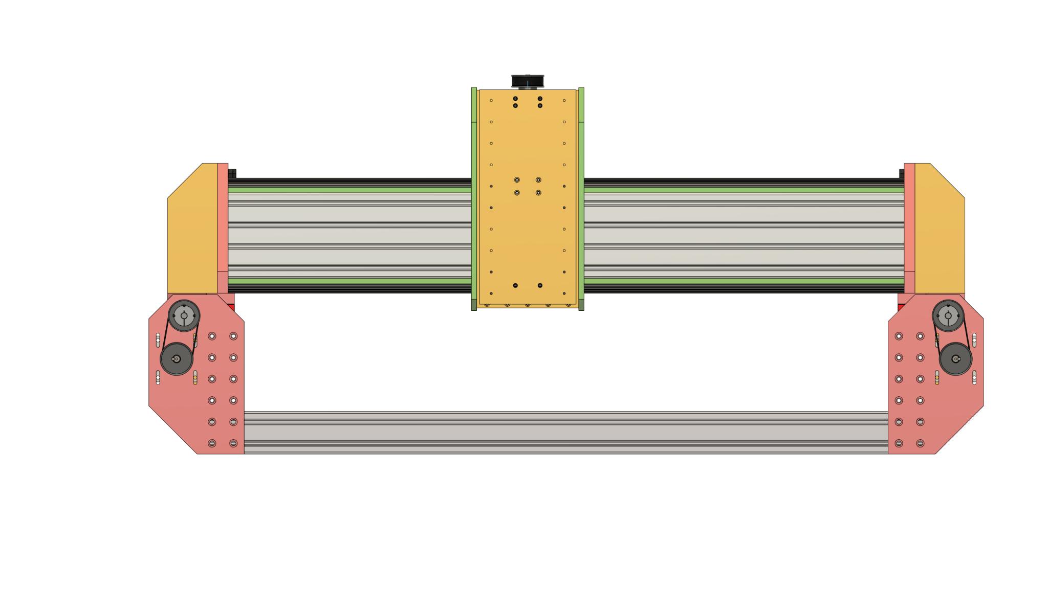 Current design: (shows Nema34 motors and taper lock pulleys, other options listed below)