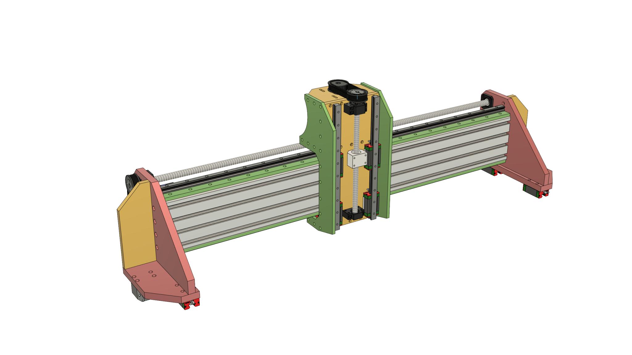 - Y axis: 2 x SFU2010 (~1160mm)