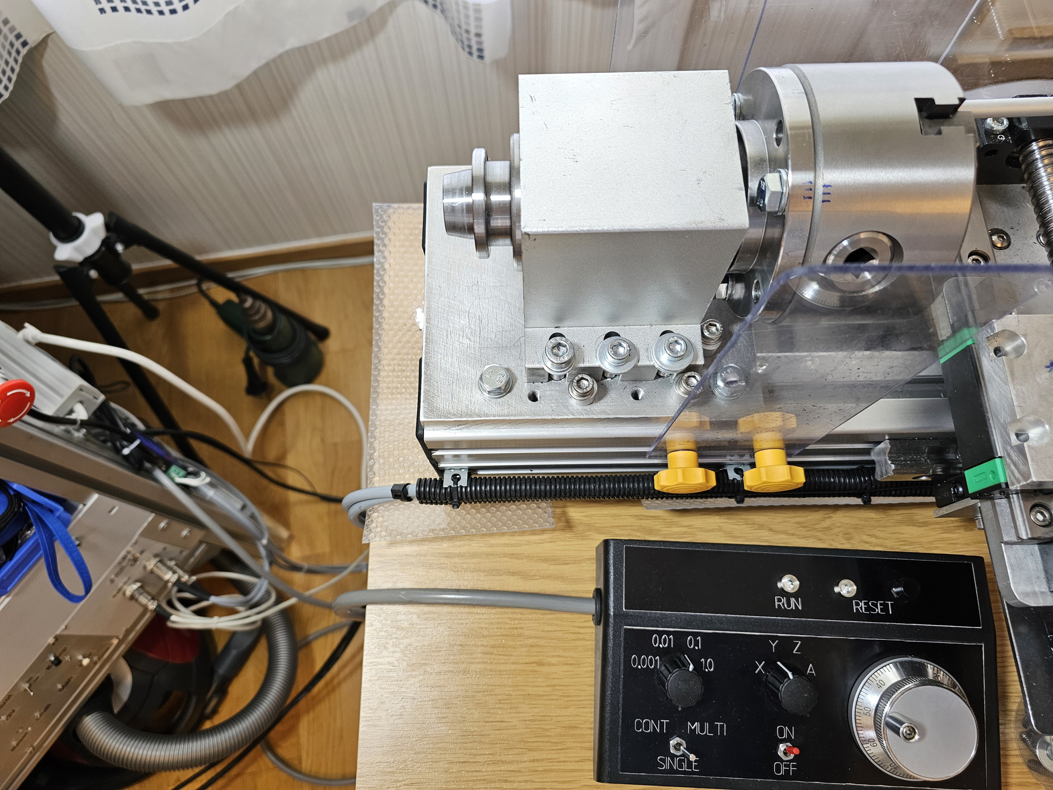 I bought a rotational axis ( 4th axis or A axis call it whatever you like) for my CNC with a 4 jaws chuck. I intend to use this as both a 4th axis on my CNC, or as an independent "poor man's lathe". I know, it will be a very primitive lathe with a lot of limitations, but I intend to try it out anyway to toy with and to learn. Maybe later on I'll buy a real lathe as well, but for now this will do. I am sure I can use it for some sort of work, but I will see that later.