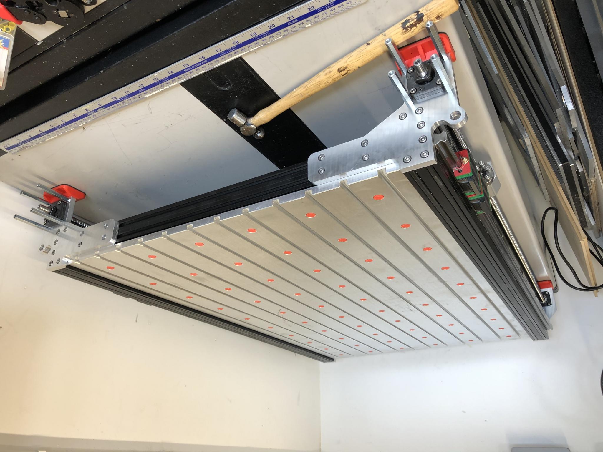 I was hoping to have two Y axis plates across the whole width of the machine but I cannot cut this length and to buy them will be too expensive so I have opted for a '4 feet' design.