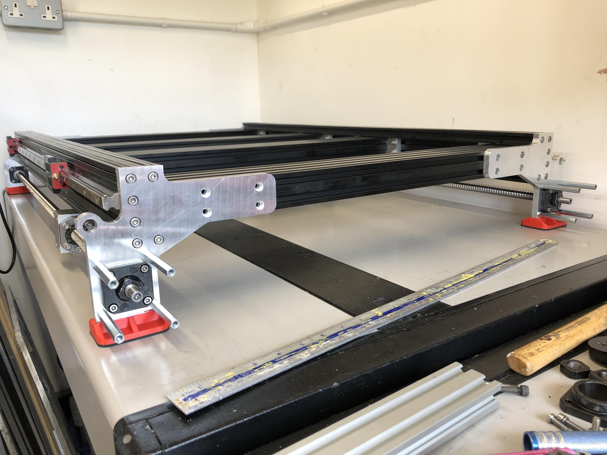 My immediate problem is that the frame is 1 mm wider at one end, I am going to try and measure carriage to carriage to get an accurate dimension and shim the cross beams to try and remove as much inaccuracy as possible.