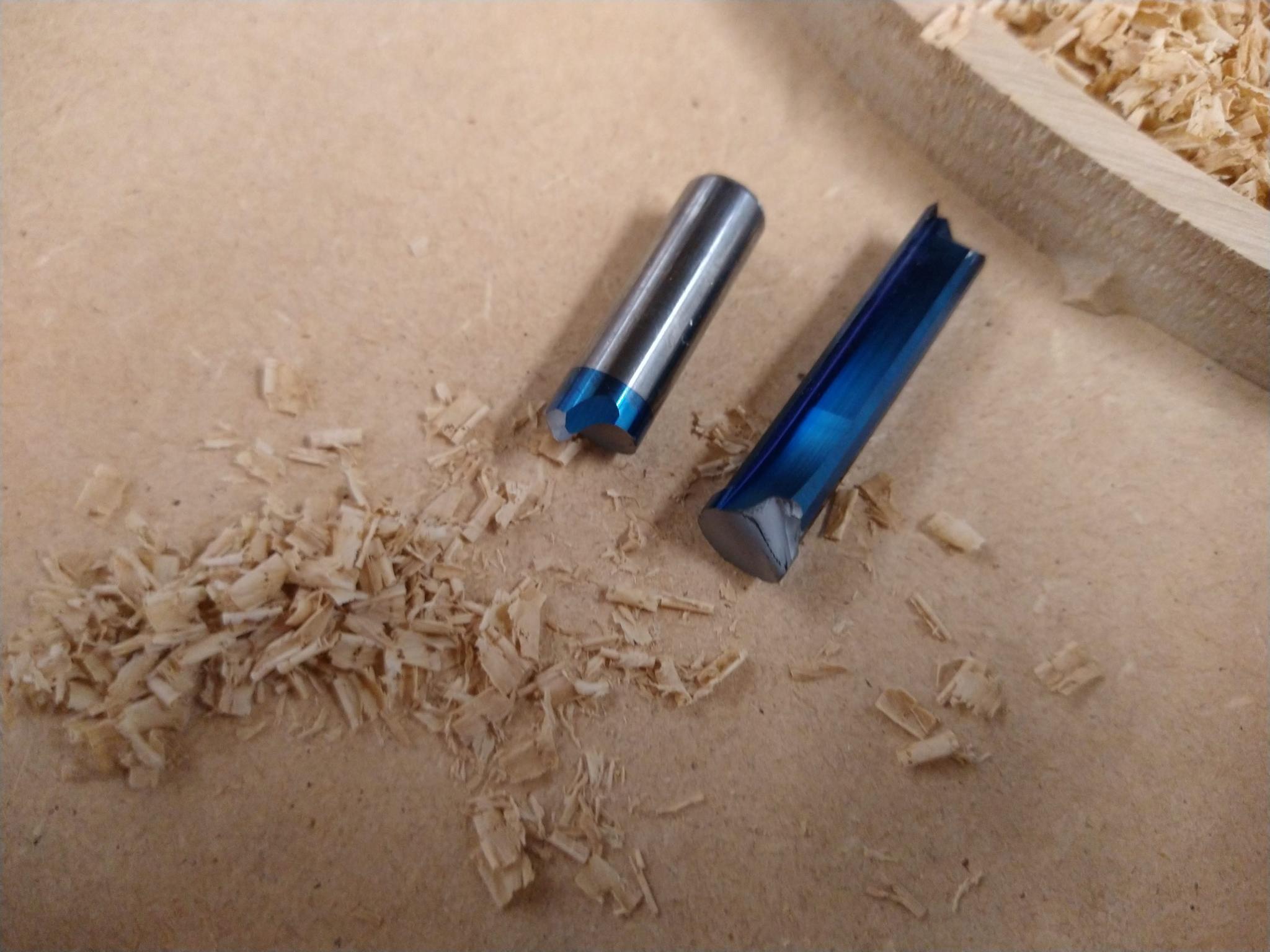 Quick update. I got back from holiday midweek and on my return, I received a package containing some new endmills from XCAN - Aliexpress. All excited and stocked up on some lovely new oak boards from the local hardwood supplier I decided to have another go. I snapped the new endmill on my first attempt... I'm clearly driving these things way too hard. Time to take a step back and slow things down. Is there a way to tell if the endmill is actually solid carbide as advertised? Ideally, so I can rule out the chance of it being a low-quality bit. It certainly looks the part. It failed on a plunge almost at the end of cutting two parts out. Unfortunately no video.