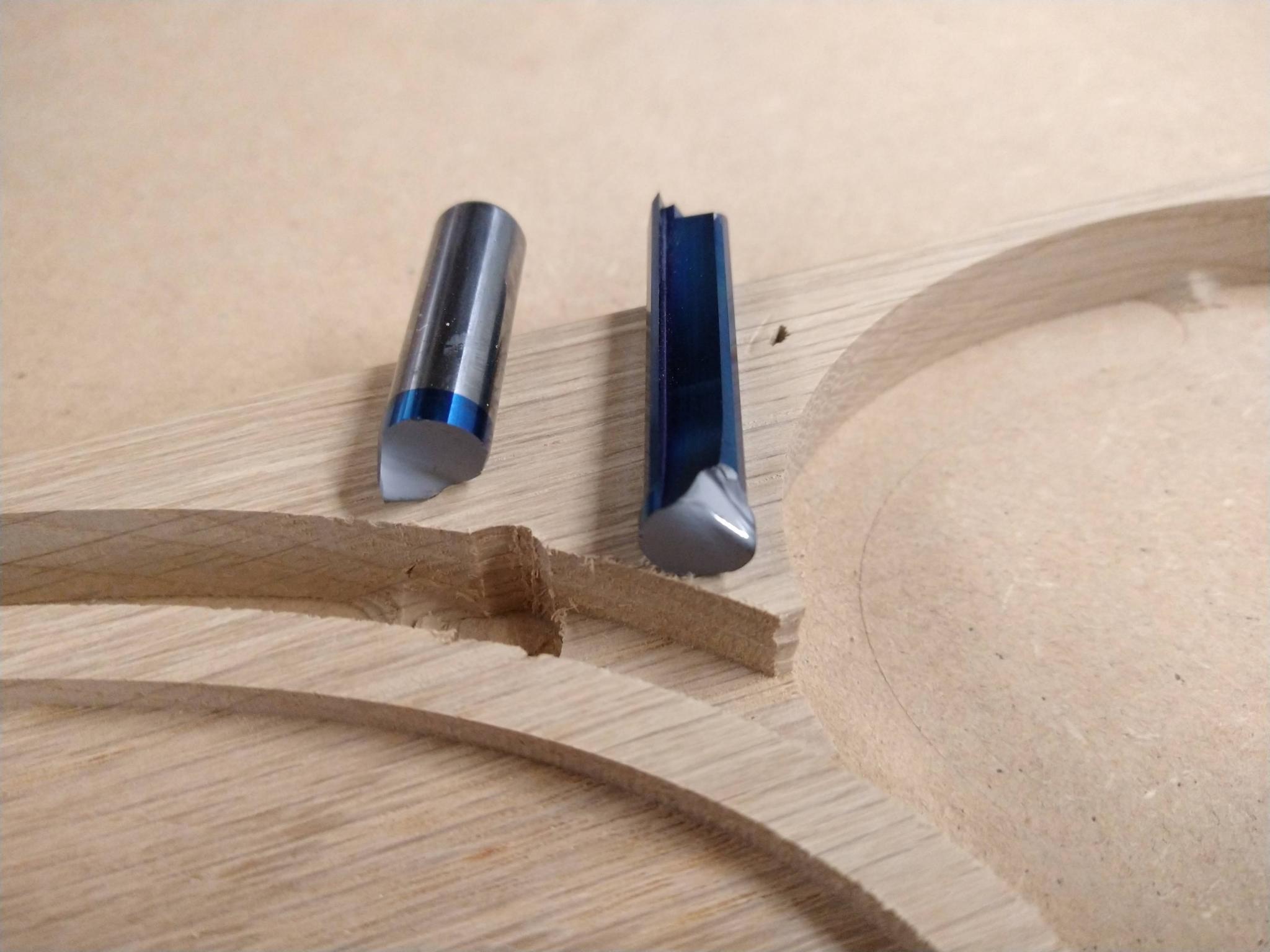 The cutters mentioned above are TCT (tungsten carbide tipped) the Trend cutting blades in the black versions are better because the whole cutting blade/edge are made from carbide rather than only "tipped", however that's where the carbide stops and hence why they can suffer the same fate when pushed on a cnc machine.